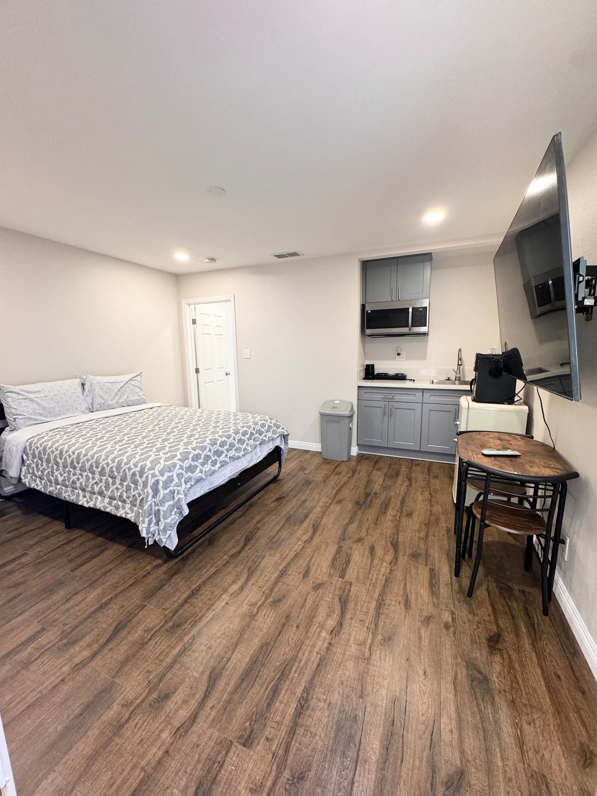 Bienvenido a tu elegante y cómodo apartamento estudio ubicado en South El Monte. Este acogedor espacio ofrece una vida minimalista con un toque de comodidad, perfecto para aquellos que buscan un estilo de vida sin complicaciones. Características principales: Cocina pequeña: totalmente equipada con varios electrodomésticos y algunos ingredientes para comidas sencillas. Zona de dormitorio: privada y acogedora, con una cama tamaño queen y mesitas de noche para tu comodidad. Baño: espacioso y tranquilo, repleto de artículos de aseo y un espejo LED ideal para selfies.