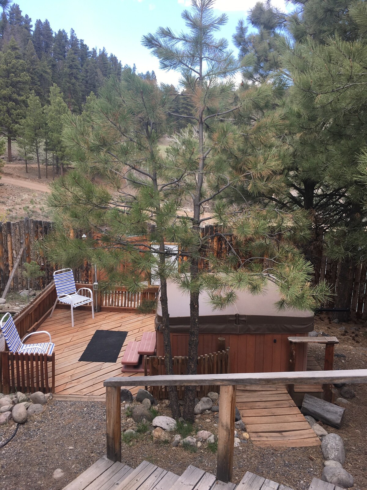New glass front barrel sauna on our remodeled deck, no pet fees in our locally hosted, dog friendly cabin that’s clean and inviting! Only five miles from Creede, the access is easy but you’ll feel remote and private. Explore these pristine mountains staying only minutes from the continental divide where peace IS quiet. We offer true fiber internet, private creek fishing, clean accommodations, and a relaxing location with incredible views! Hiking trails leave from here!