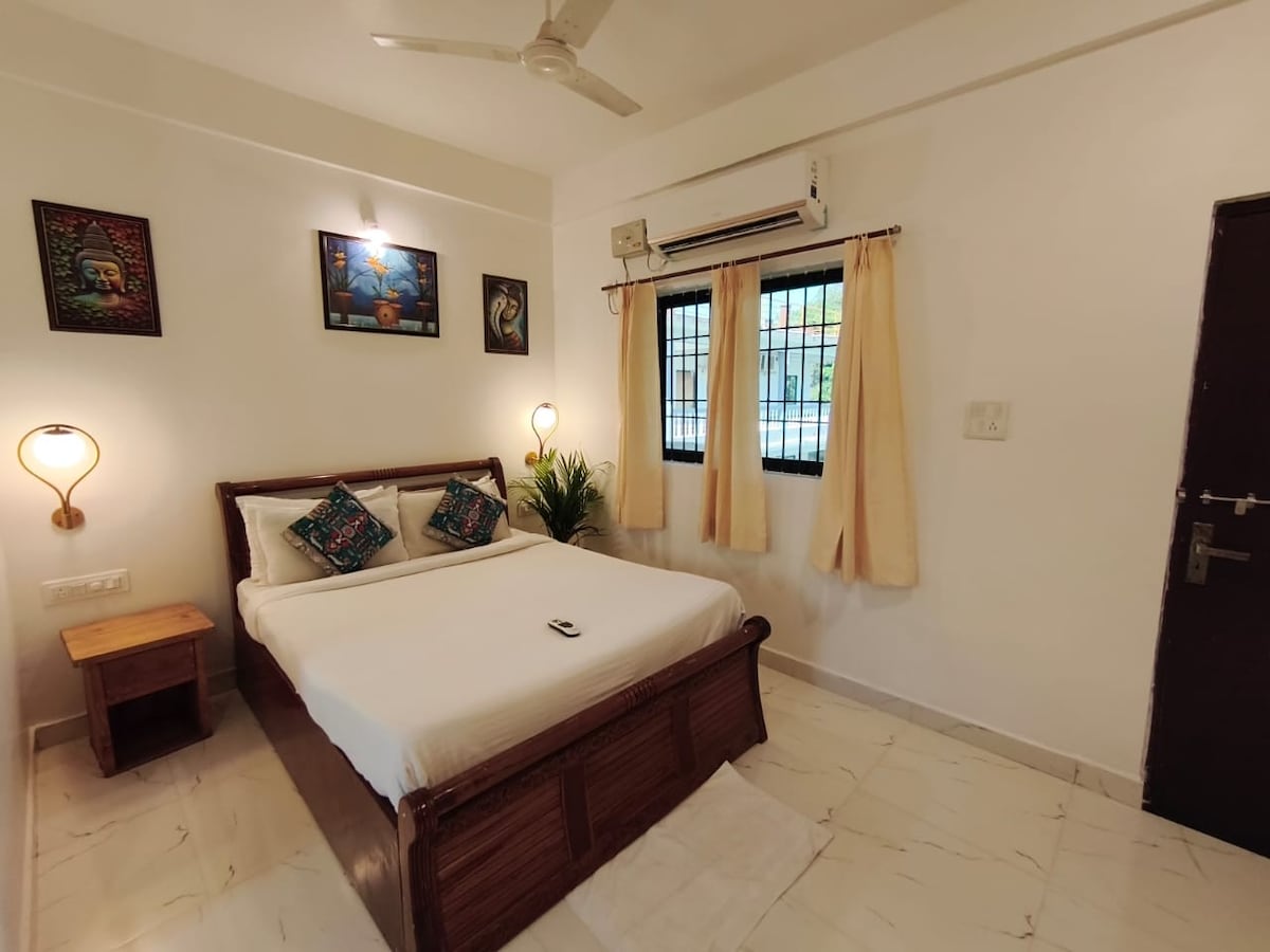 Tu escapada perfecta a la playa en Vagator te espera, lista para llenar tu corazón de paz y recuerdos inolvidables. Habitación privada de 270 ft² / 25 m² a 3 min a pie de la playa de Vagator ☞ Walk Score 99 (a pie de la playa de Vagator, el fuerte de Chapora, cafeterías, restaurantes y discotecas) ☞ Piscina ☞ Balcón privado ★«Excelente ubicación, cerca de la playa y de restaurantes» ☞ Luces regulables Wifi ☞ de alta velocidad. ☞ Aparcamiento en el sitio ★ «El interior era genial y daba un ambiente muy acogedor» ★«Está situado muy cerca de la playa».