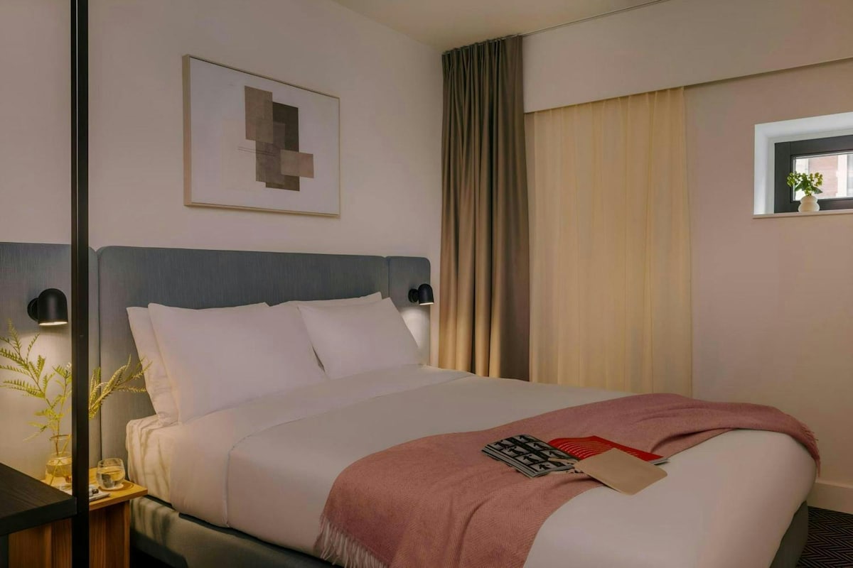 Esta habitación extragrande ofrece una cama tamaño «king» de alta calidad y una cómoda zona de estar, ideal para relajarse después de un largo día. Incluye una tumbona, baño privado, escritorio, climatización y artículos de aseo sostenibles. Los huéspedes disfrutan de todas las instalaciones del hotel, incluidos los espacios comunitarios, el gimnasio y el alquiler de bicicletas. El impuesto municipal de 4,50 euros/noche/persona se cobrará en el hotel.