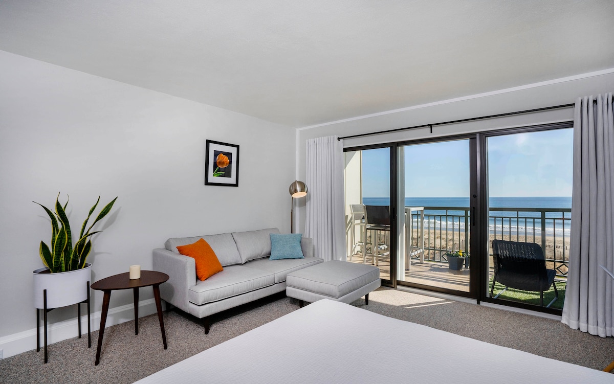 Nuestro tranquilo estudio frente al mar tiene todas las comodidades del hogar con vistas increíbles, un balcón que se cierne sobre un tramo sereno del paseo marítimo y está a solo unos pasos de restaurantes, tiendas, salas de juegos, atracciones y ¡todas las mejores comidas del paseo marítimo! ¡Se puede llegar a pie a cualquier lugar de la ciudad! Si quieres aventurarte más lejos, ¡hay una tienda de alquiler de bicicletas a solo unas puertas de distancia! Disfruta de un paseo en bicicleta por la ciudad o hasta Dewey Beach. Si buscas un paseo panorámico, disfruta de los senderos para bicicletas hasta el parque estatal de Cabo Henlopen y Lewes.
