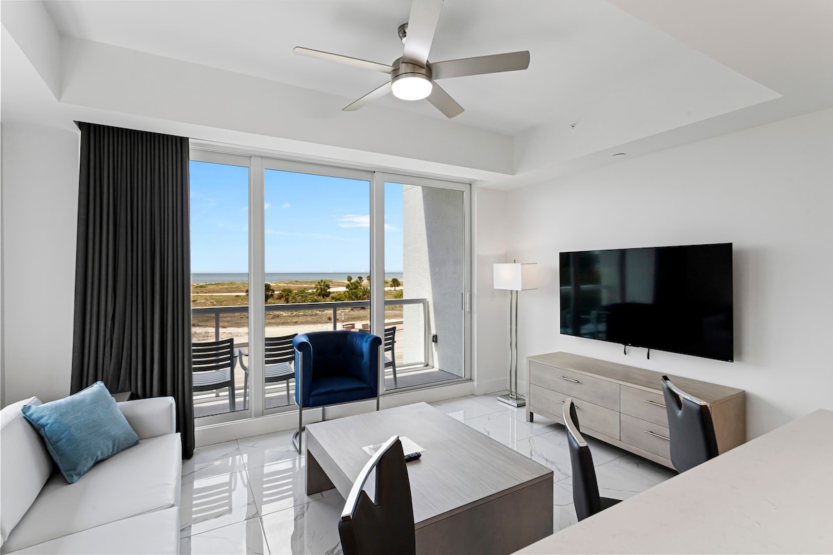 ¡Despierta con impresionantes vistas al mar! Relájate en este luminoso estudio con vistas a la bahía de Boca Ciega, toma un café en tu balcón privado mientras observas a los delfines. LO más destacable: • Vistas directas al mar desde el balcón • Piscina climatizada, spa y gimnasio con vistas a la bahía • A minutos de Madeira Beach, St. Pete y War Veterans' Memorial Park • Cómoda cama tamaño king • Cerca de alquileres de barcos, senderos y restaurantes frente al mar ¡Perfecto para una escapada romántica o una escapada tranquila en solitario!