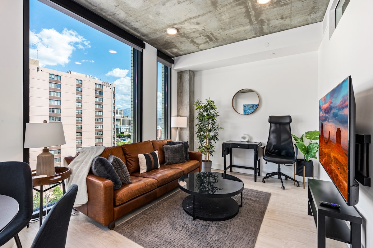 Disfruta de un apartamento con un hermoso diseño bohemio ubicado en el centro de Salt Lake City. El apartamento está equipado con todos los elementos esenciales. Puedes utilizar la cocina totalmente equipada y preparar una gran comida casera mientras contemplas las impresionantes vistas desde el balcón. El apartamento se encuentra cerca de todos los principales destinos de la ciudad: ¡Temple Square, Universidad de Utah, Vivint Arena, Salt Palace, estaciones de esquí y mucho más! ¡Restaurantes, tiendas de comestibles y centros comerciales a pocos pasos de distancia!