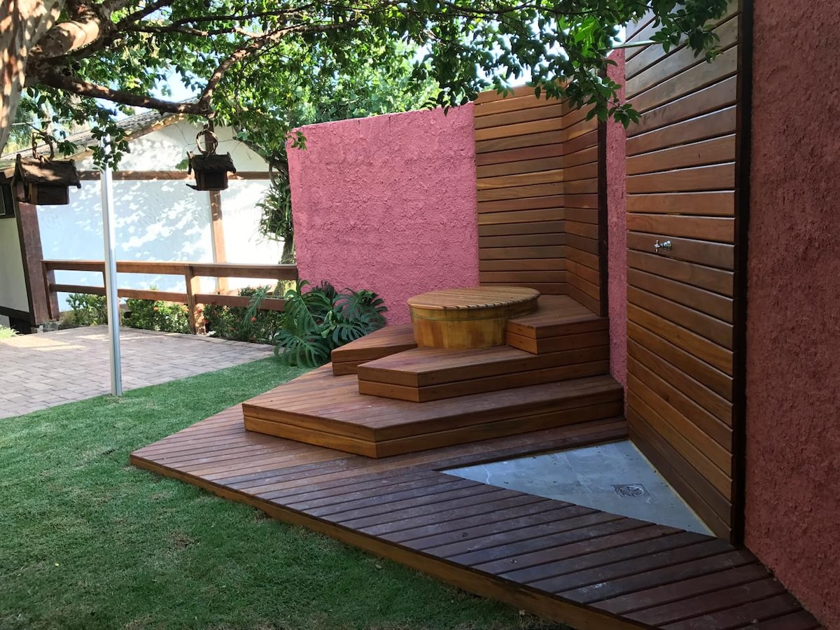 EXCLUSIVITY CHARM COMFORT SECURITY Two-story chalet. 430ft²/40m² interior and 430ft²/ 40m² garden. 24-hour security. Suite, kitchen, dining area, 2 bathrooms, private garden, hammock, hot tub, shower, cooktop and Buda on request: reike, biofeedback therapy, aromatherapy, bachfloral, access bar. Partners: trecking, tour and hang gliding. 500m/0.3mi from the subway, market, island tours, restaurants, wine, patisserie, craft beer and bike store. Pepê Beach 1km away. The best microclimate in Rio.