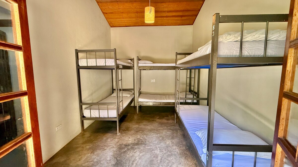 O Hostel Quintal Guest é simples, tranquilo e acolhedor — a apenas 2 minutos a pé da Praia Grande, em Ubatuba. Atualmente, é o hostel mais bem avaliado da cidade. Este é o Quarto Compartilhado Misto, que acomoda até 6 hóspedes. O espaço conta com ar-condicionado, ventilador, armários individuais, luz e tomada em cada cama, além de cortinas para mais privacidade.