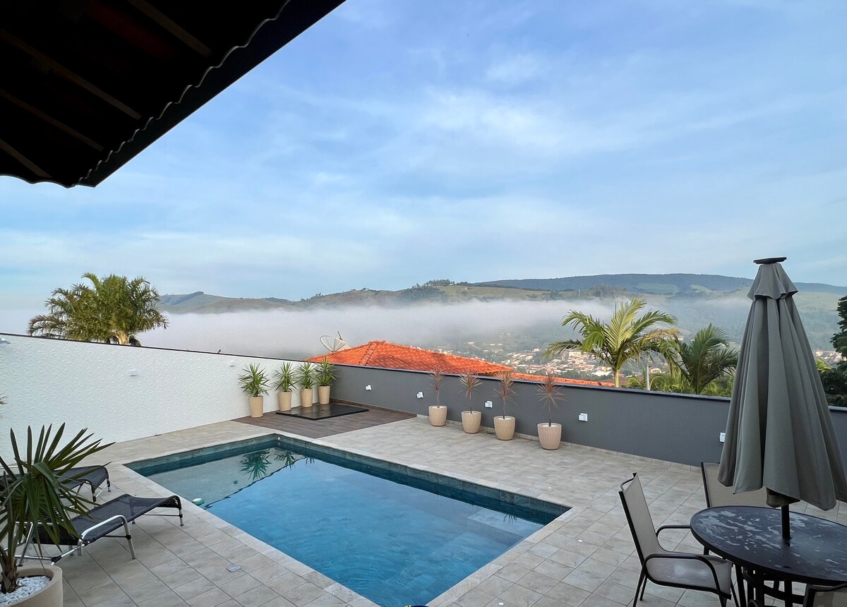 ✨ Desfrute de momentos inesquecíveis em nossa chácara exclusiva, a apenas 2 km do centro da cidade, em um bairro tranquilo e seguro, perfeita para família e amigos! Acomoda até 8 pessoas, com quartos com ar-condicionado, ambientes aconchegantes e cozinha completa. Encante-se com a vista deslumbrante para as montanhas, um pôr do sol inesquecível e noites perfeitas para admirar as estrelas. Piscina climatizada e check-in prático. Uma experiência única que une natureza, conforto e sofisticação!