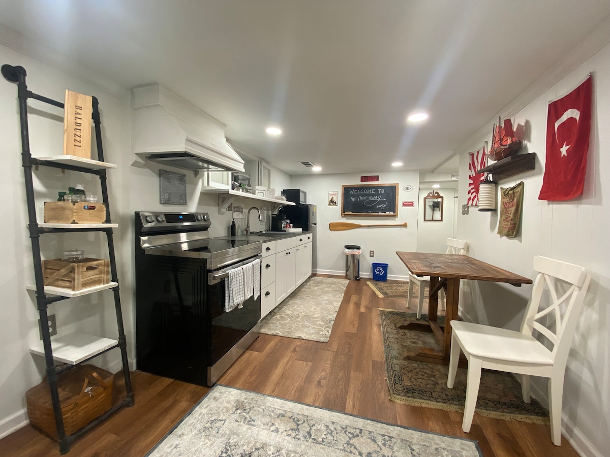 This is a two room above the garage apartment with a dedicated side entrance for guests separate from the main house by screens down and a barn door up. Once upstairs you have your own private space. Your mini fridge will always be stocked with an assortment of beverages and snacks as well as breakfast items. Enjoy, our kayaks, fire pit or sunset viewing on the pier. Lots of hiking and water sports abound in the area. A short drive south is Solomon’s island. This is a safe space for all🥰