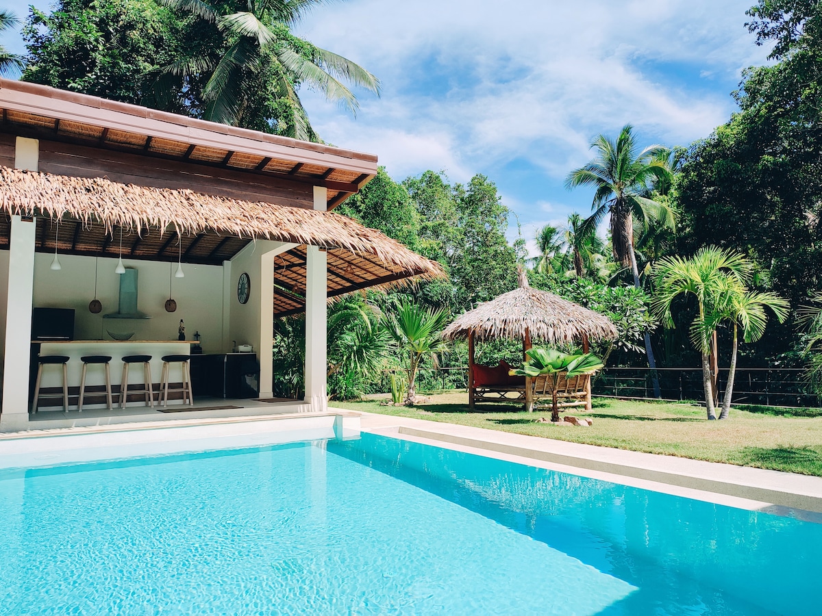 Villa Aphatcha es una encantadora villa de 5 dormitorios con piscina privada de agua salada y un hermoso jardín tropical rodeado de naturaleza. La casa cuenta con todas las comodidades modernas, internet de alta velocidad, TV inteligente y cocina y bar totalmente equipados. 4 dormitorios tienen su baño independiente y aire acondicionado. El quinto dormitorio está unido al dormitorio principal, por lo que tendrás que compartir el baño. La casa se encuentra a solo 5 minutos en coche del muelle, la ciudad principal y la playa🏖️.