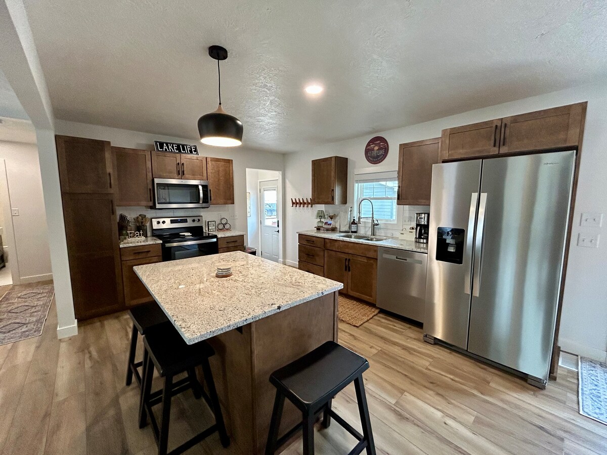 Acogedor y bien equipado apartamento de 2 dormitorios y 2,5 baños a poca distancia a pie del lago, tiendas, golf, paseo marítimo, Emporio y restaurantes de Broadway. Ideal para 4 adultos y hasta 5 huéspedes más: 2 dormitorios tamaño king, un sofá cama en la sala de estar, + colchón inflable. Disfruta de la sala de estar abierta, el balcón y la cocina bien equipada en el segundo piso. El tercer piso tiene lavandería, baño principal, cama principal y baño principal. Los servicios al aire libre incluyen espacio cubierto de hierba y juegos. Estacionamiento y wifi incluidos. No se permiten mascotas, fumar, barcos u otros remolques.