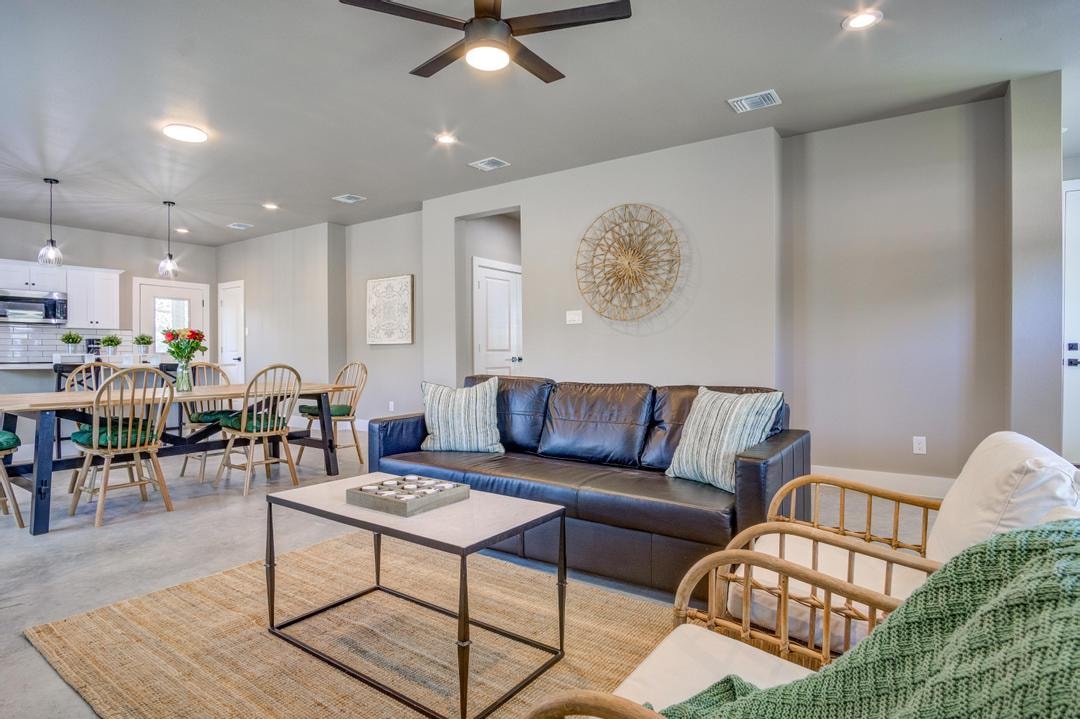¡Te damos la bienvenida a nuestro tranquilo refugio en Hill Country! Esta moderna casa de 3 dormitorios y 2,5 baños, construida en 2022, ofrece una mezcla perfecta de relajación y aventura. Ubicada en una zona serena, nuestra casa es ideal para contemplar las estrellas y relajarse en la belleza de la naturaleza. Situado a solo 10 minutos en coche de los ríos Comal y Blanco, tendrás fácil acceso a tubing, pesca y exploración de los pintorescos alrededores. La casa está totalmente equipada con todos los elementos esenciales para que tu estancia sea cómoda y práctica. ¡Resérvala!