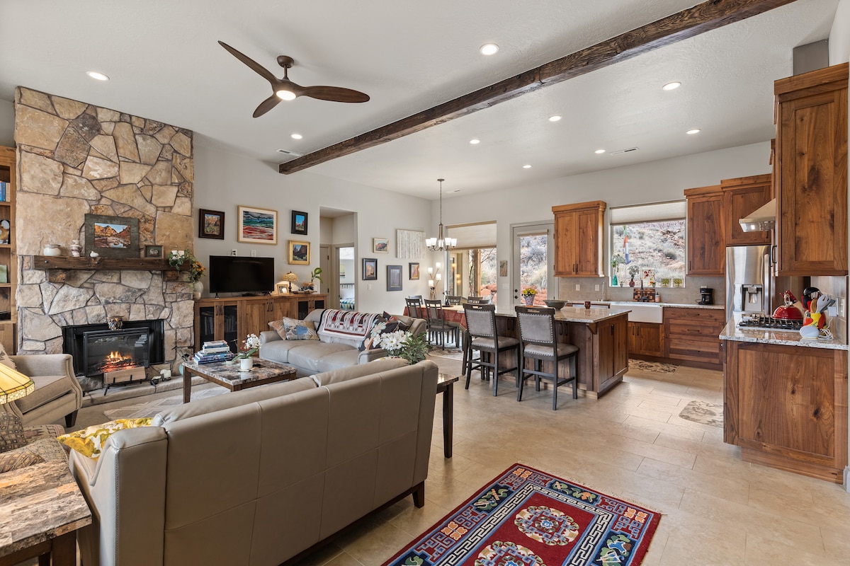 Imagine slowing to the rhythm of the land. Trade the hum of daily life for canyon winds and the scent of juniper trees. This intimate log cabin isn’t just a place to stay; it’s a place to reconnect with nature and forgotten parts of yourself. Tucked away on 2 private cliff-view acres, it feels secluded yet remains minutes from Kanab’s dining, shops, and essentials. Where bold color meets primitive charm, it’s an eclectic, soulful home base for wandering through Southern Utah’s wild beauty.
