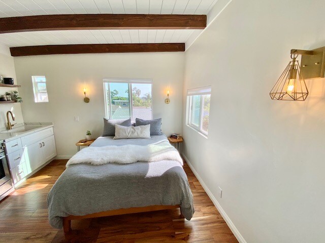 Encantadora casa de campo, ubicada en el patio trasero detrás de la propiedad principal en un barrio tranquilo, con una ubicación céntrica en la zona histórica y a solo 10 minutos del aeropuerto y del centro de San Diego. Recientemente reconstruido y modernizado para adaptarse a una pareja o una familia de 4. Cuenta con una terraza privada para comer, leer o simplemente disfrutar del clima perfecto de San Diego.