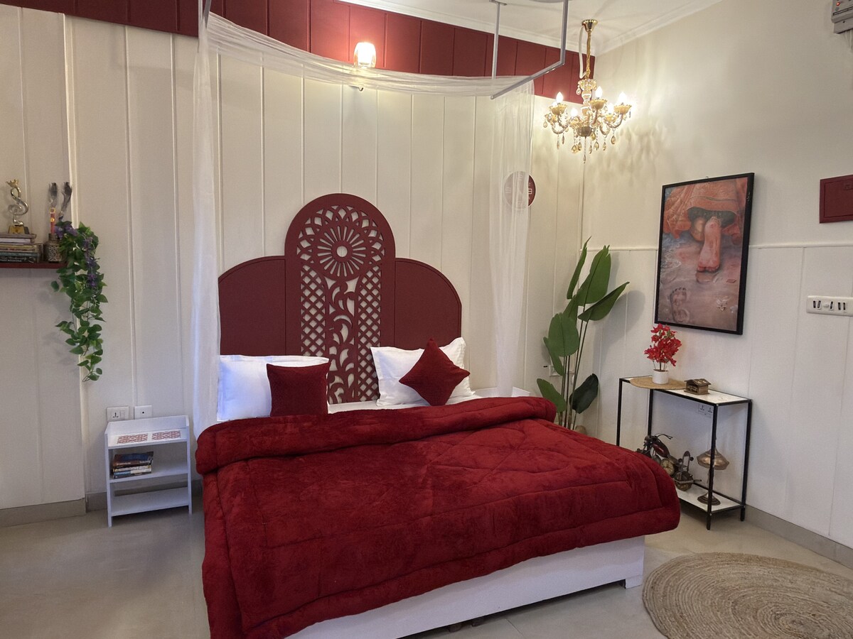 Welcome to Boho Aura, a warm, boho-inspired retreat in the heart of Vrindavan, just minutes from Prem Mandir and ISKCON. Step outside the building and you’ll find local markets right downstairs, making daily essentials easy to access. Thoughtfully designed for relaxation, it’s a space for your to unwind after temple visits and feel truly at home. Note - Local IDs are not accepted. Please text us if you have any doubts.