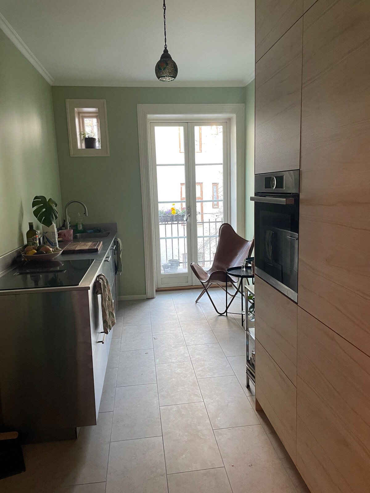 Apartamento clásico de diseño nórdico. Frente a un tranquilo jardín con flores y árboles frutales. Un barrio hermoso y vibrante. Amplio salón: TV con Chromecast, chimenea, mesa para cenar y trabajar. Sofá. Cocina: Lavavajillas, lavadora, suministros para cocinar y hornear, Moccamaster, prensa francesa, molinillo de café, hervidor de agua. Recamara 1: Cama doble de 160 x 200 cm. Recámara 2: 2 camas 90x200/litera para adultos Pequeño baño funcional. Para su bebé: silla alta, cuna de viaje, cambiador, cochecito.