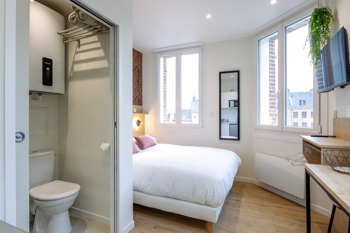 L'esprit hôtel le ofrece un encantador apartamento reformado situado en el segundo piso, donde encontrará todas las comodidades y la elegancia de una habitación de hotel. La ubicación es ideal, cerca de todos los servicios a 5 minutos de la estación de tren, el centro de la ciudad de Amiens y la catedral.