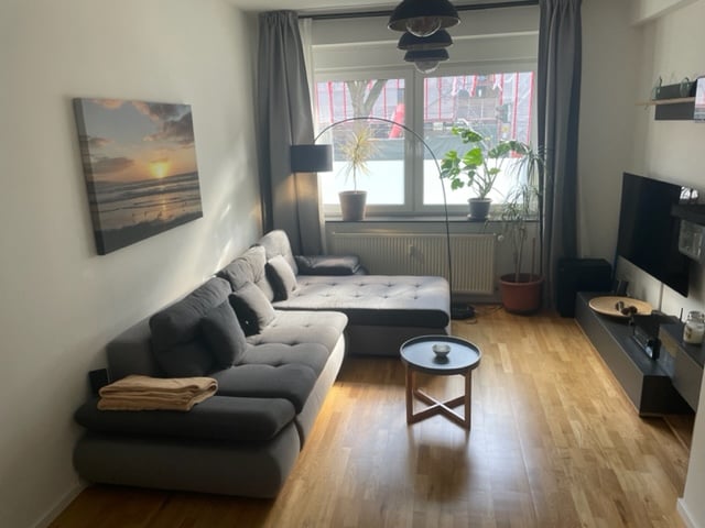 Apartamento amueblado, aprox. 65 m², casa bifamiliar, 1ª planta. Cocina equipada, cuarto de baño con ventana y bañera/ducha, sala de estar, dormitorio con cama doble de 180 cm para 2 personas y sofá cama (140 cm) para un adulto o 1-2 niños. Uso compartido del jardín, lavadora/secadora en el sótano, aparcamiento gratuito, zona residencial tranquila en el sur de D, conectado con transporte público: estación de tren de cercanías Eller-Süd a poca distancia o en autobús (líneas 723/732). Alojamiento para parejas, viajeros de negocios y familias