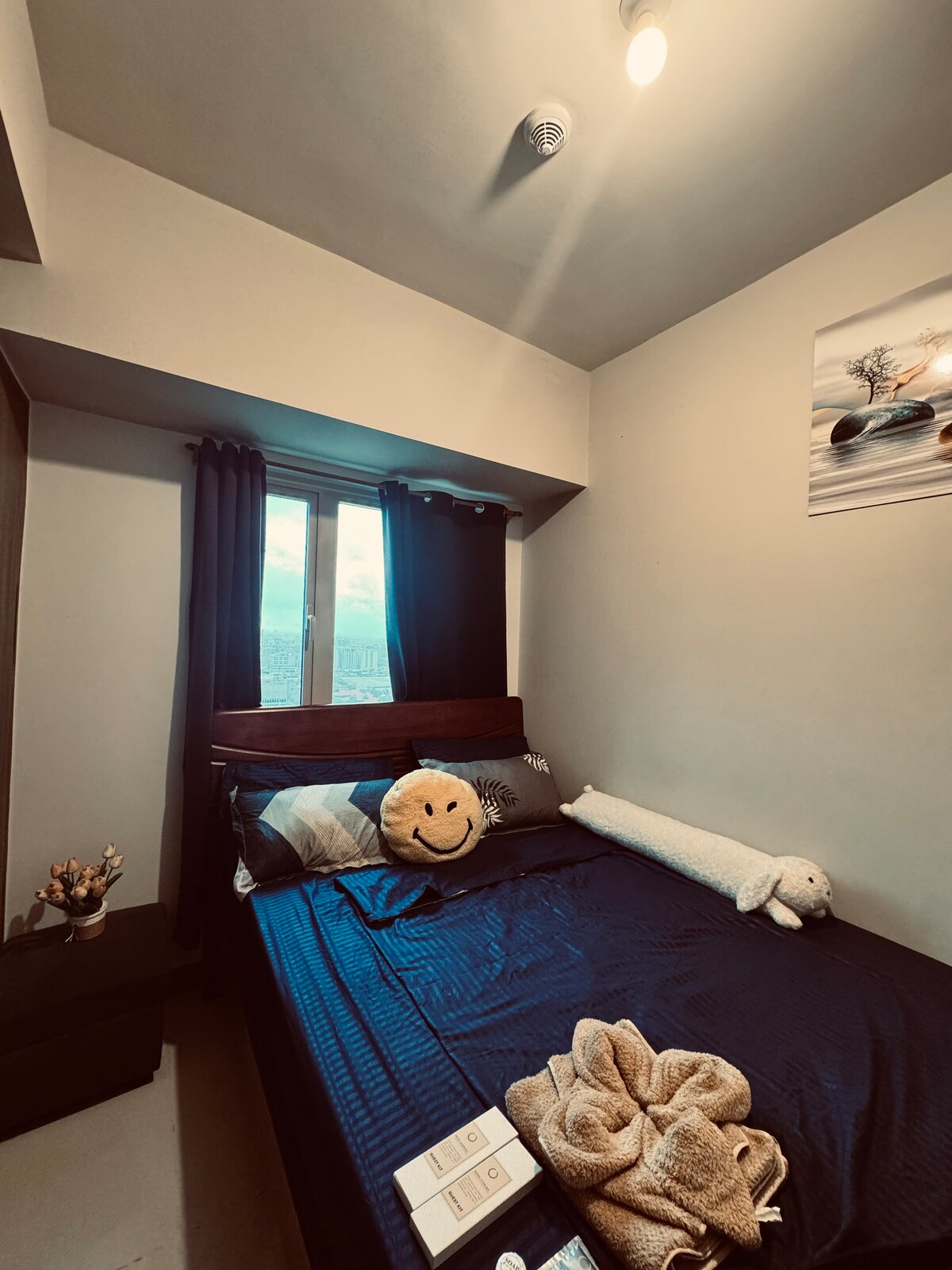 ¡Disfruta de la increíble vista de la puesta de sol de la bahía de Manila desde esta nueva unidad de condominio! ¡2 camas tamaño queen para garantizar una comodidad óptima para tu grupo! Perfecto para grupos y familias pequeñas que buscan un lugar para alojarse mientras están en el metro. Todos los huéspedes y sus visitantes deben estar preregistrados. No se permiten visitas sin cita previa.