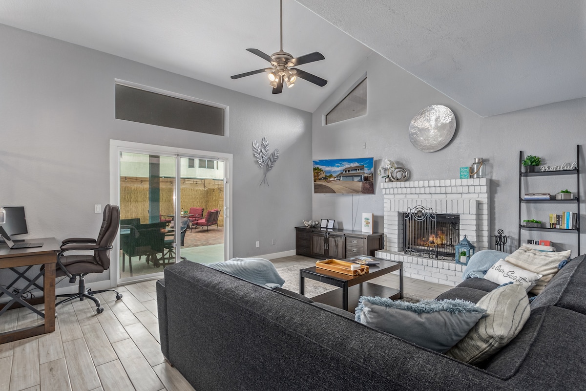 Maravilloso, cómodo, espacioso, más de 2300 pies cuadrados. Casa unifamiliar totalmente amueblada. ¡Mucho espacio para pasear con sala de estar y sala familiar con chimenea de gas! Disfruta del sol de Arizona o de las hermosas noches estrelladas en este patio trasero privado estilo resort. con patio cubierto, piscina de juegos y mesa de fuego de gas. También incluye patio vallado para tus mascotas. ¡Se admiten mascotas! 1 estacionamiento en garaje. ¡Gran barrio! Cerca de excelentes restaurantes y tiendas y acceso a la autopista. AZ TPT#21500053