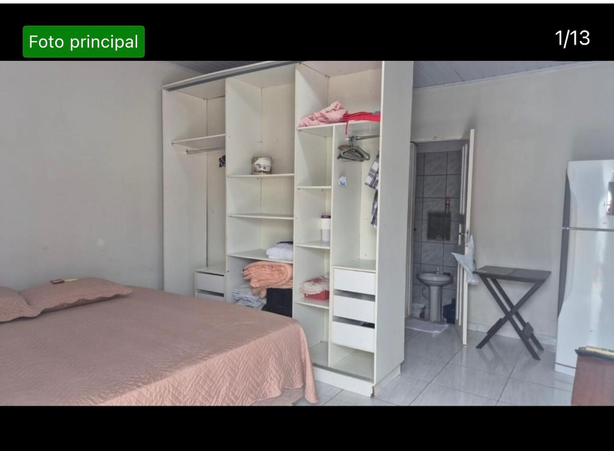 Kitnet completa, aconchegante e bem localizada.