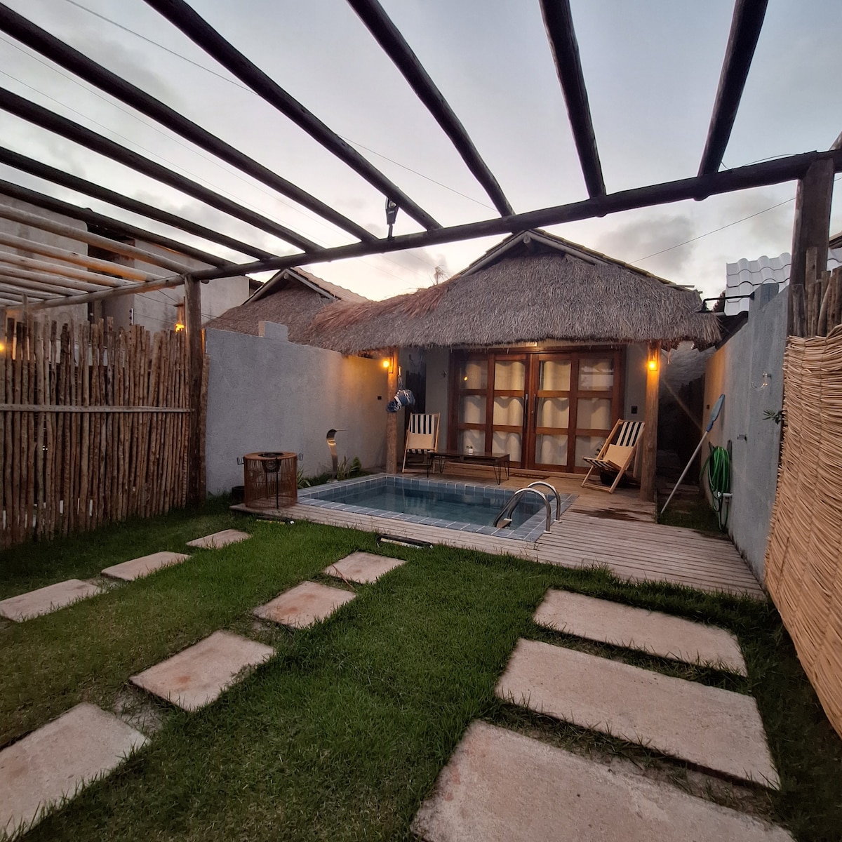 Lugar único, com estilo próprio, localizado a 250 metros da praia (Santuário de Preservação do PEIXE BOI). Ideal para quem busca tranquilidade num lugar paradisíaco, seguro e inesquecível. O bangalo fica dentro de condomínio com estacionamento e piscina. Dispomos de cama queen, armário, enxoval novo, mantas, toalhas de banho, cadeiras de praia, mesinha, cooller e uma tenda para praia. Banho quente com água doce e secador de cabelo. Próximo a restaurantes conceituados e passeios diversos.