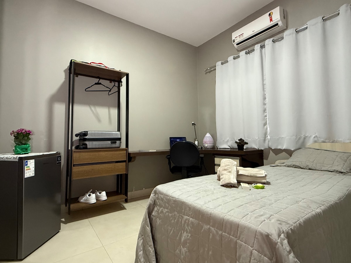 Una suite privada e individual en una casa donde compartes una sala de estar y cocina con los propietarios, en el centro de la ciudad. Un lugar completo y acogedor. ¡Espacio limpio, cómodo y listo para darte la bienvenida a Palmas!