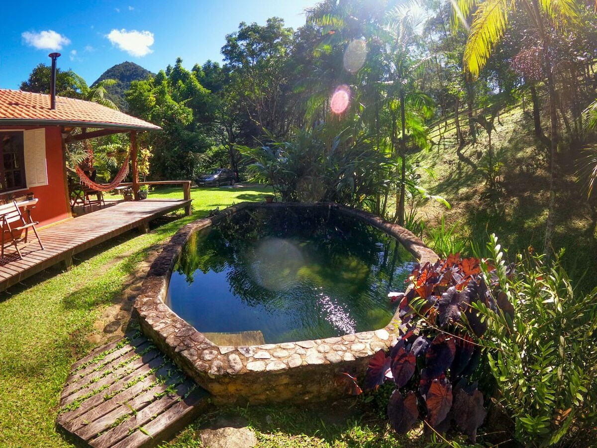 Ven y diviértete y descansa junto a la naturaleza en Río Bonito de Lumiar. Paz y total privacidad en un jardín de ensueño. Piscina exclusiva de agua corriente, barbacoa y sauna seca para ti. Casa bien equipada: cocina completa, toallas y sábanas impecables, Internet rápido, TV inteligente y baño de gas. Cerca del pueblo, donde hay tiendas y opciones para comer y beber. Recibimos 1 perro mediano o hasta 2 perros pequeños. Clases de masaje, yoga o pilates y baño de bosque con cita previa y programación.