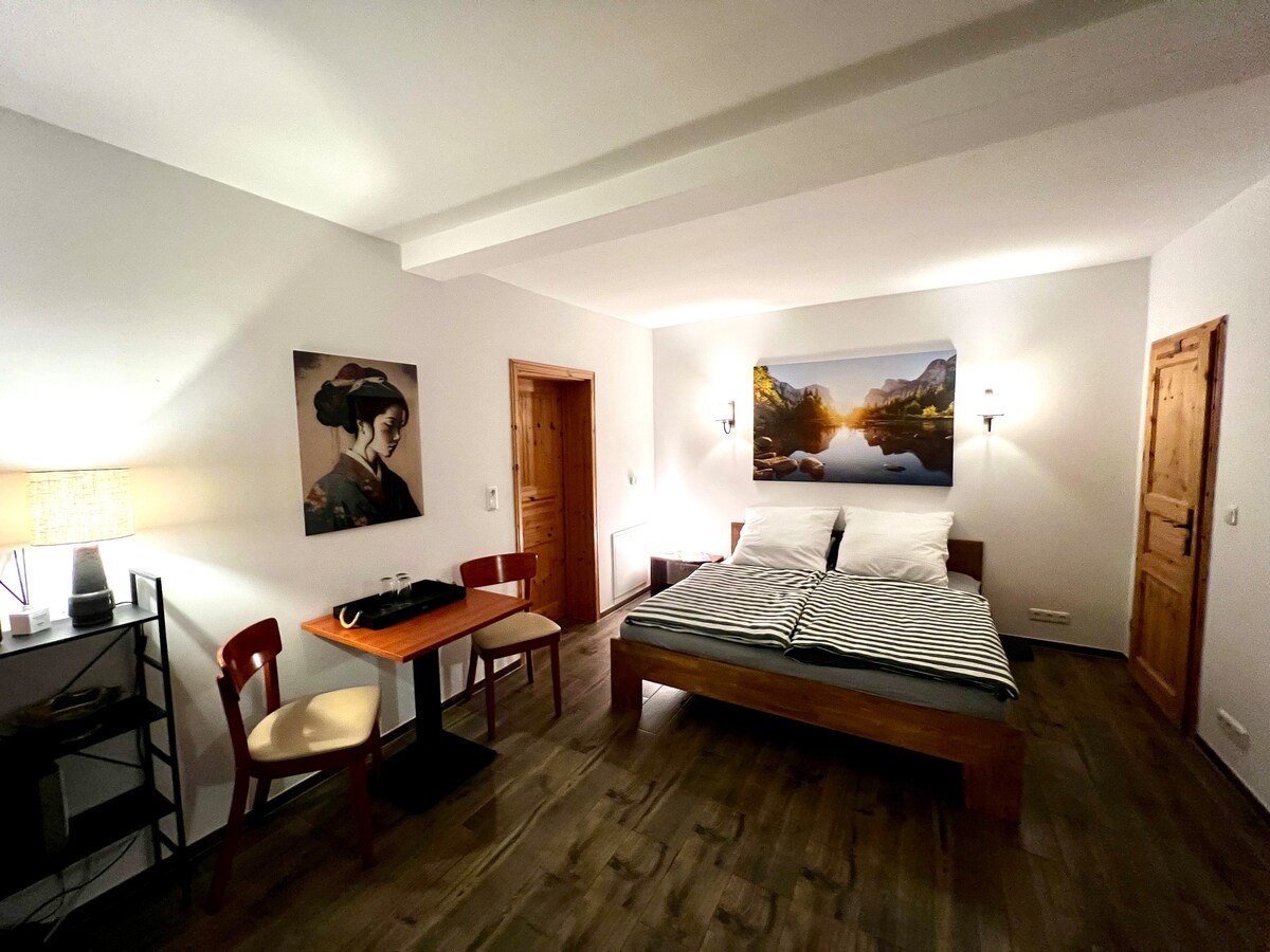 El departamento se completó con cariño en 2020 como casa de huéspedes para familiares y amigos. Con una vista directa y acceso inmediato a un estanque de arcilla rodeado de cañas, es ideal para desconectarse del estrés. ¡Con un poco de suerte, incluso el martín pescador se puede ver aquí mientras pesca desde la terraza! En los días fríos, tu propia sauna de infrarrojos está disponible (tarifa de 7,-/ uso). El departamento está bien equipado y tiene una pequeña cocina pequeña.