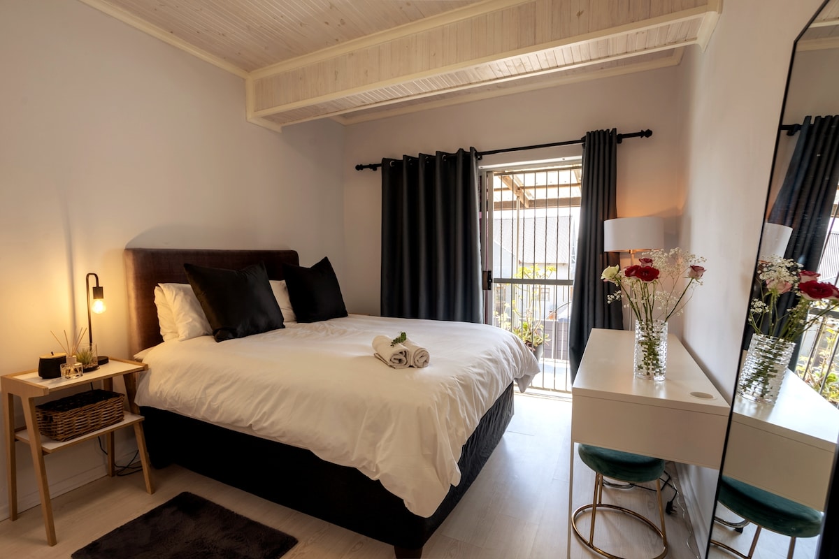 Disfruta de una estancia encantadora en nuestro apartamento privado de un dormitorio. Tendrás estacionamiento seguro detrás del acceso cerrado, compartiendo la entrada con la casa principal. Estamos convenientemente ubicados a 5 minutos en coche de la ruta del vino y los restaurantes de Durbanville, y a solo 20 minutos en coche de Ciudad del Cabo y el paseo marítimo V & A. Además, el parque infantil, Ipic Play Centre, está a poca distancia a pie de nuestro apartamento.