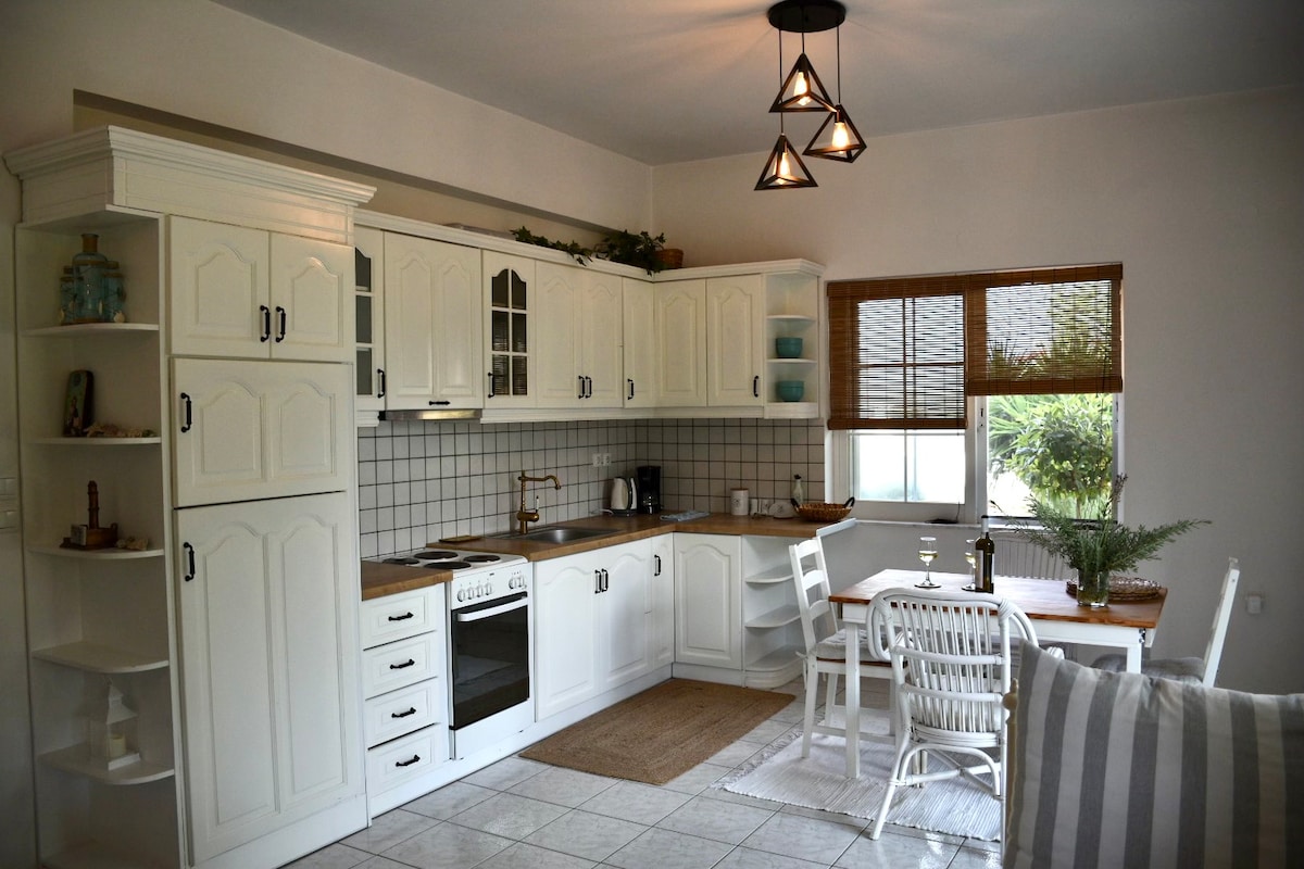 Una casa de campo moderna, un entorno elegante pero familiar para un lugar creado aquellos que buscan un ambiente tranquilo entre la naturaleza, la buena comida y la belleza. La isla de Evia ofrece la mejor solución para aquellos que quieren disfrutar de las vacaciones de verano cerca del mar, pero no quieren perderse todo el confort que ofrece la gran ciudad, a sólo 99 km de Atenas ,130 km del aeropuerto de Atenas. Amplios espacios privados al aire libre, con piscina privada y jardín. Vive una experiencia única, entre la cultura, la relajación y la naturaleza.