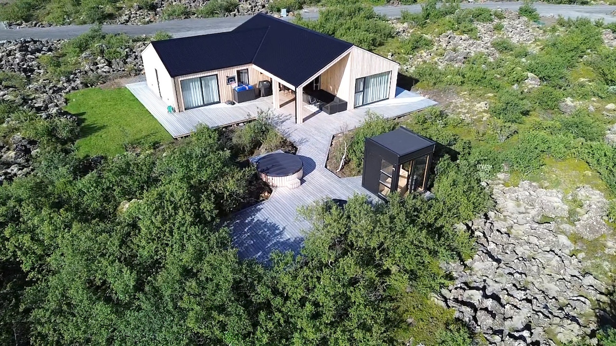 Skrida, stunningly designed holiday home, perfectly placed in the picturesque valley of Svarfadardalur. The house has 3 bedrooms, a large, open-plan living room, dining room and kitchen, outdoor hot tub, offering breathtaking views of the valley. A newly installed, very fast internet connection allows facilities for remote working. It is 5 min. drive from the fishing village of Dalvik with a supermarket, swimming pool, health center, culture house, wine shop and easy access to main sights.