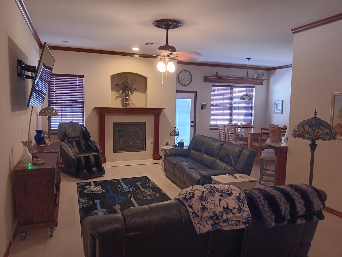 Experimenta el encanto de una pequeña ciudad en nuestra acogedora casa de 2 dormitorios y 1 baño en Wanette, Oklahoma. Relájate en dos dormitorios con cómodas camas tamaño queen, cada una equipada con un televisor para tu entretenimiento. Disfruta de la calidez de las chimeneas eléctricas tanto en el dormitorio principal como en la sala de estar. Nuestra cocina totalmente amueblada espera tus aventuras culinarias. Relájate en el gran patio trasero, perfecto para reuniones o para observar las estrellas. Sumérgete en el ambiente acogedor de Wanette, haciendo de tu estancia un retiro encantador.