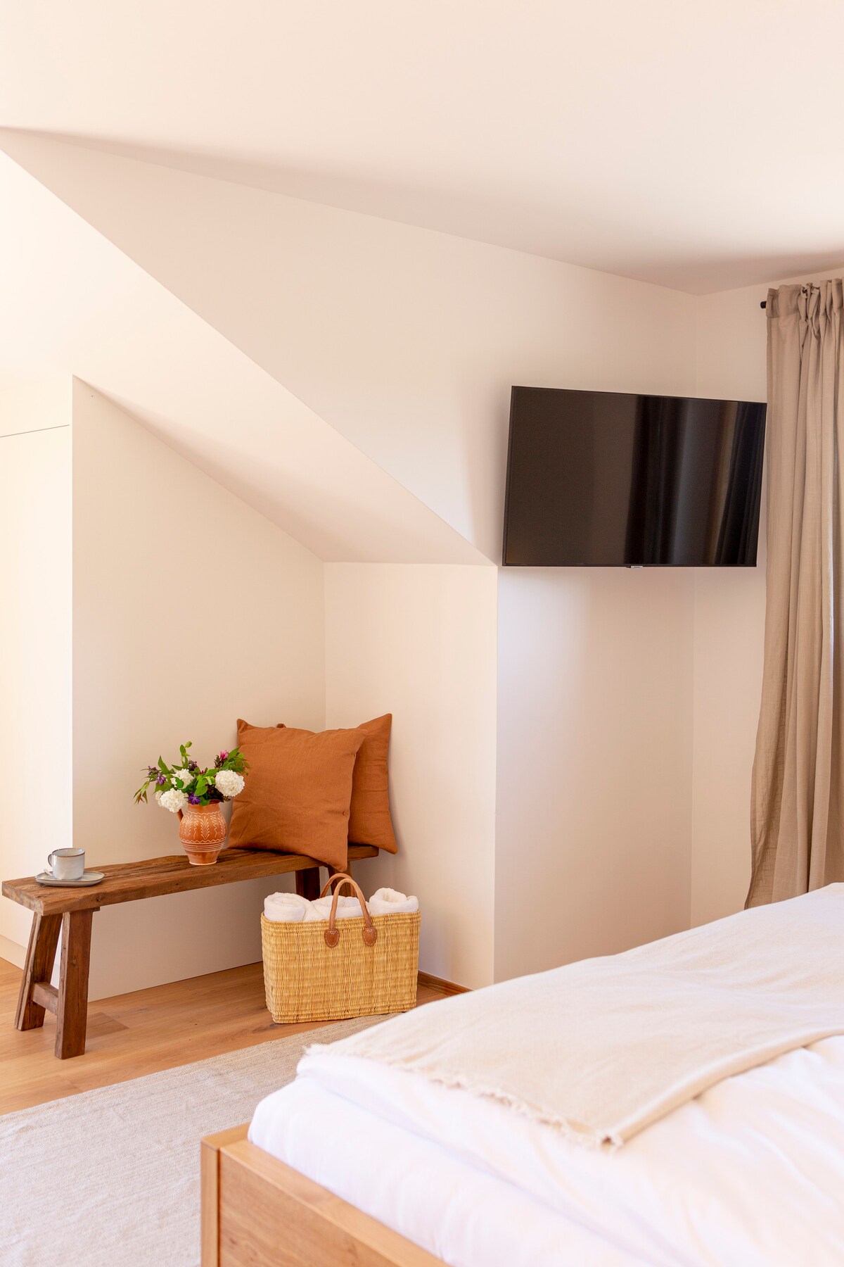 Cada uno de nuestros espaciosos apartamentos de vacaciones tiene al menos un balcón y te invita a disfrutar del sol de la tarde. Con un tamaño de entre 40 y 56 m², hay espacio suficiente para excursionistas, parejas o familias con niños. Todos están amueblados de forma rústica y acogedora, y ofrecen todo lo que necesita. Los apartamentos están equipados con vajilla, ropa de cama y toallas, así como un secador de pelo. Todos los apartamentos disponen de conexión wifi gratuita. ¡Así que el teletrabajo no es ningún problema!
