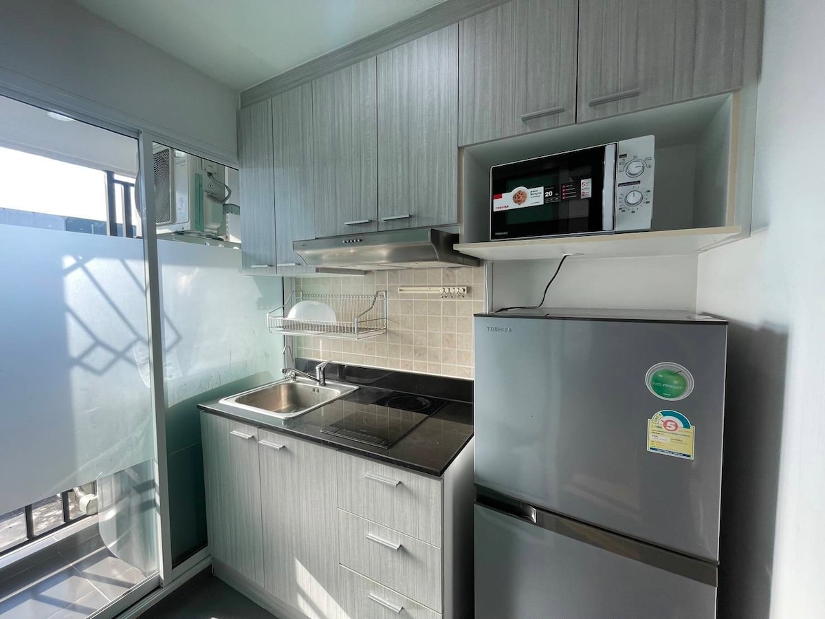 Nuevo departamento moderno y lujoso en la conocida zona de Rama IX. Disfruta de un espacio luminoso con camas cómodas, cocina americana totalmente equipada, televisor inteligente y baño limpio. El edificio ofrece piscina, gimnasio, seguridad 24/7 y fácil acceso a cafés, tiendas y transporte. Perfecto para parejas, viajeros solos o estancias de negocios que buscan comodidad y conveniencia :)