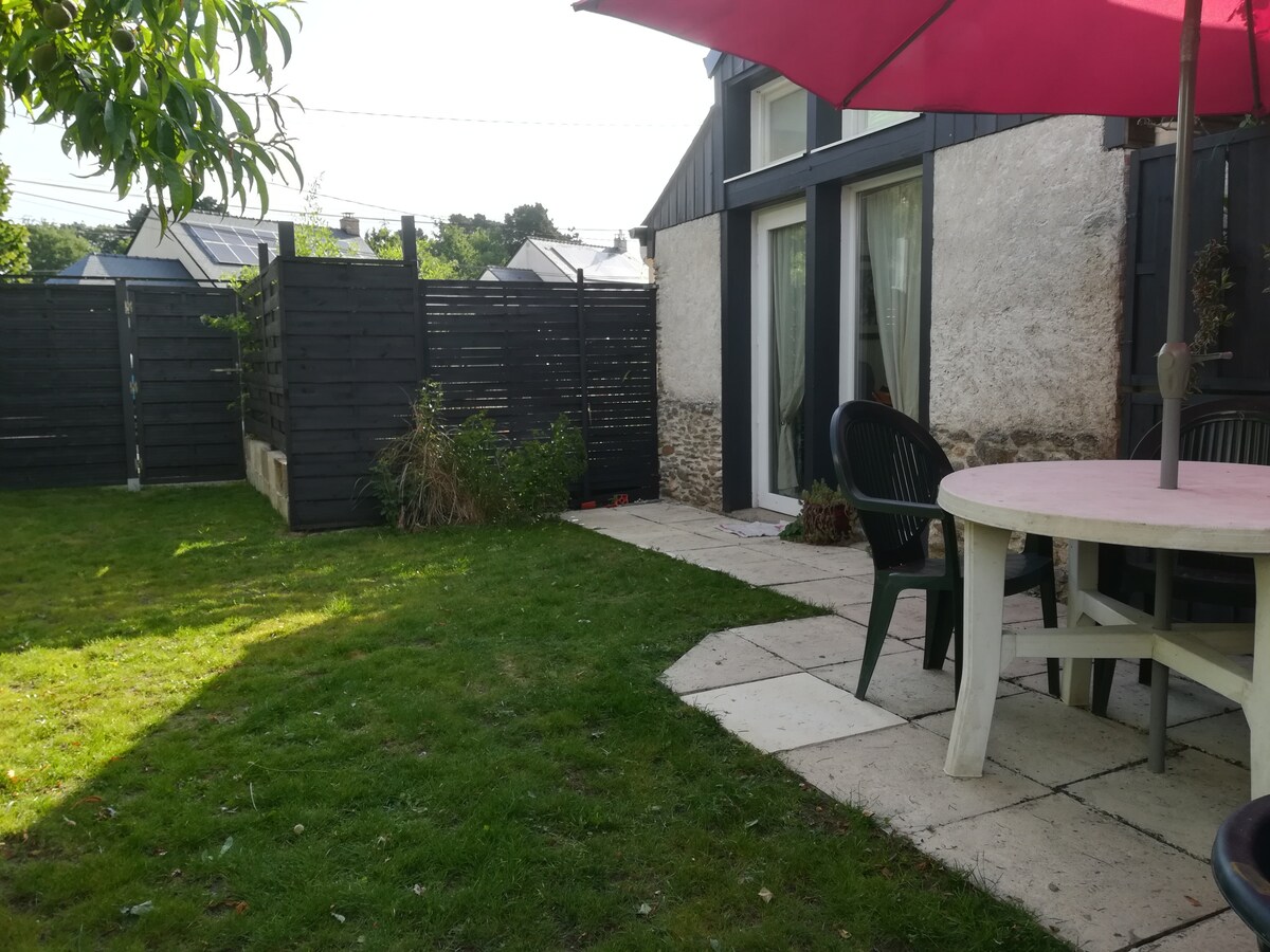 Studio independant situé au calme dans un écrin de verdure , aux portes de Nantes. Idéal pour une ou deux personnes, il accueille néanmoins jusqu'à 4 couchages pour un séjour de courte durée ou avec enfants. Construit avec des matériaux bio-sourcés, vous pourrez travailler ou vous ressourcer en WE ou vacances au coeur d'un habitat neuf tout confort et pensé que vous vous sentiez comme à la maison. Situé au fond de notre jardin, l'accès est autonome et indépendant, le parking est sur place.
