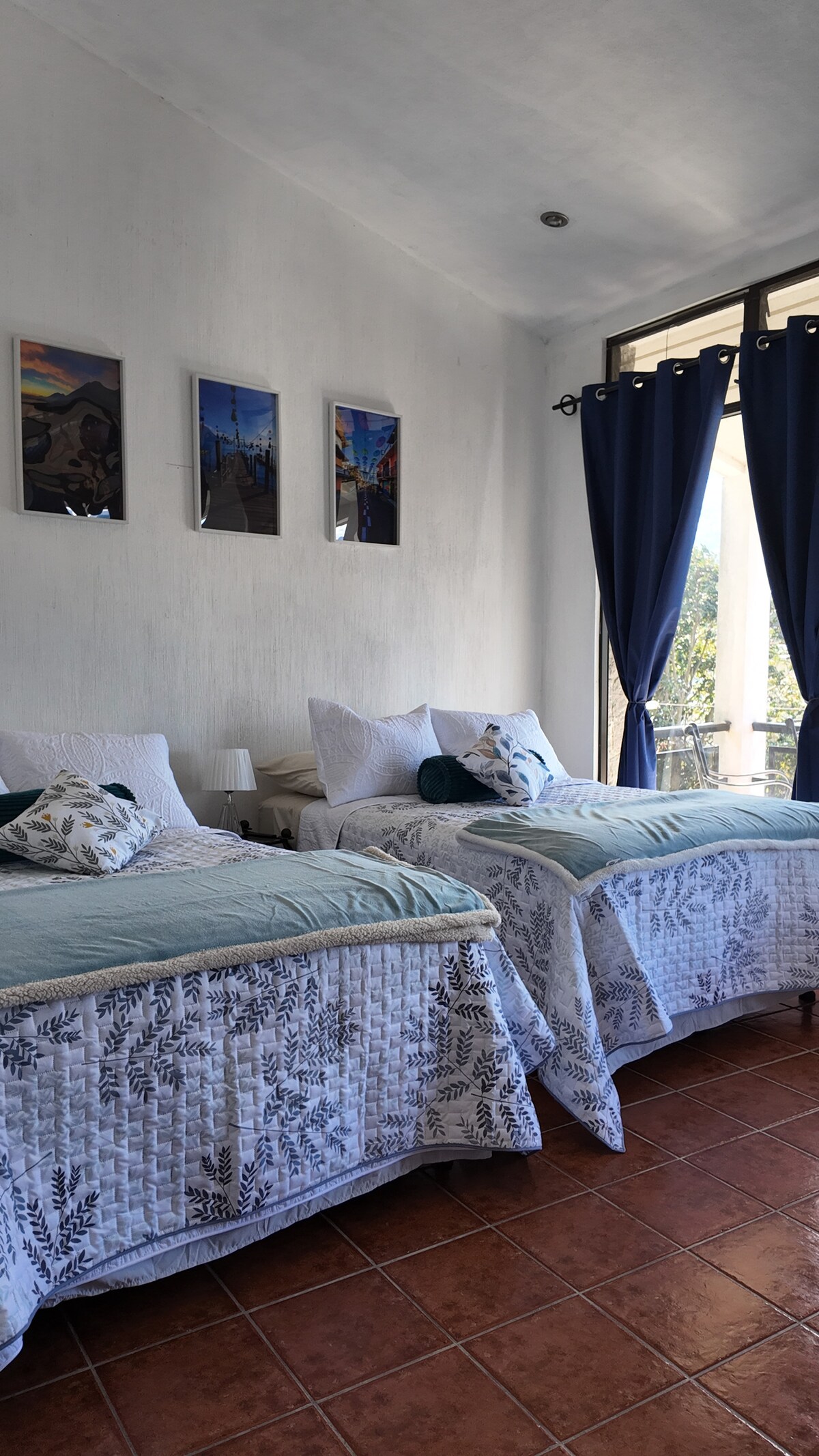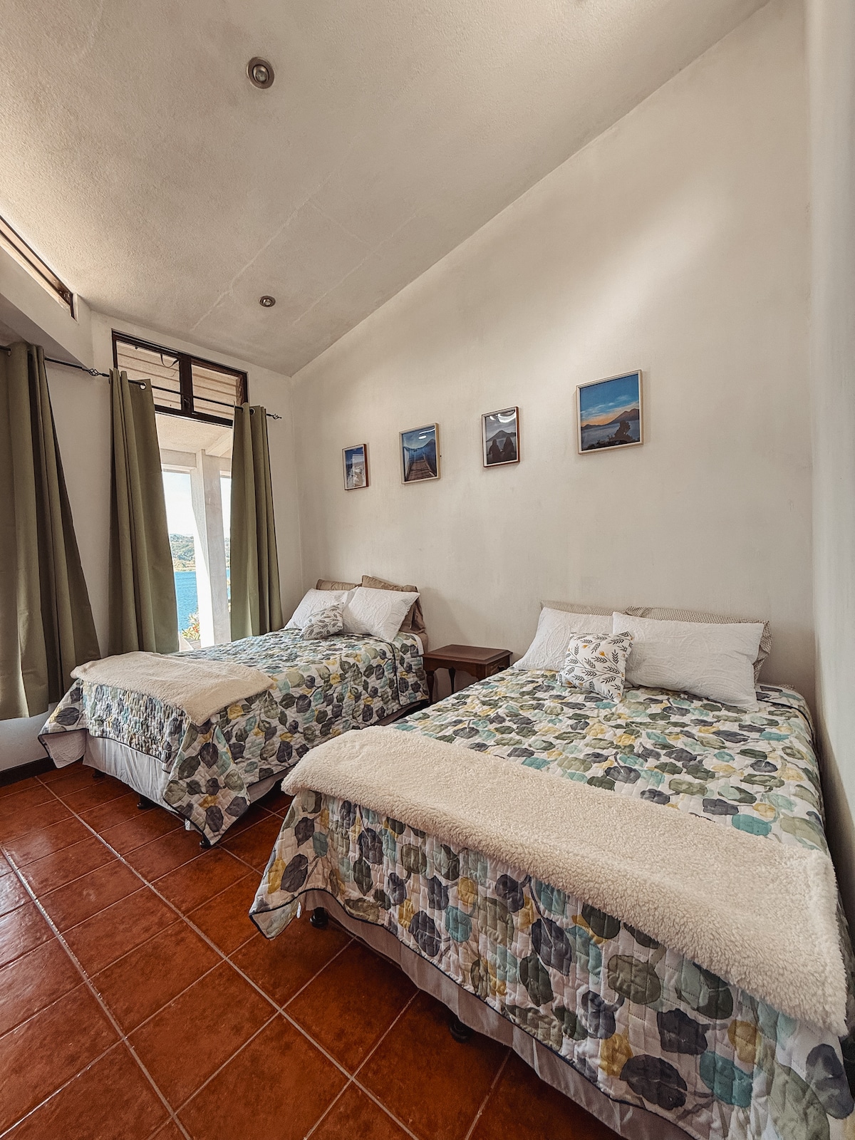 Guests will enjoy access to the second floor of the house centrally located place only steps away from the market. Enjoy breathtaking views of volcan San Pedro. 2 queen size beds in one big room and 1 bed in a smaller room that can accommodate 5 people with a solar powered shower and washroom. Smart TV available. No parking on site. If you have a vehicle, nearby parking can be arranged. NO PETS allowed. There is internet available but not stable as it is from the local town.