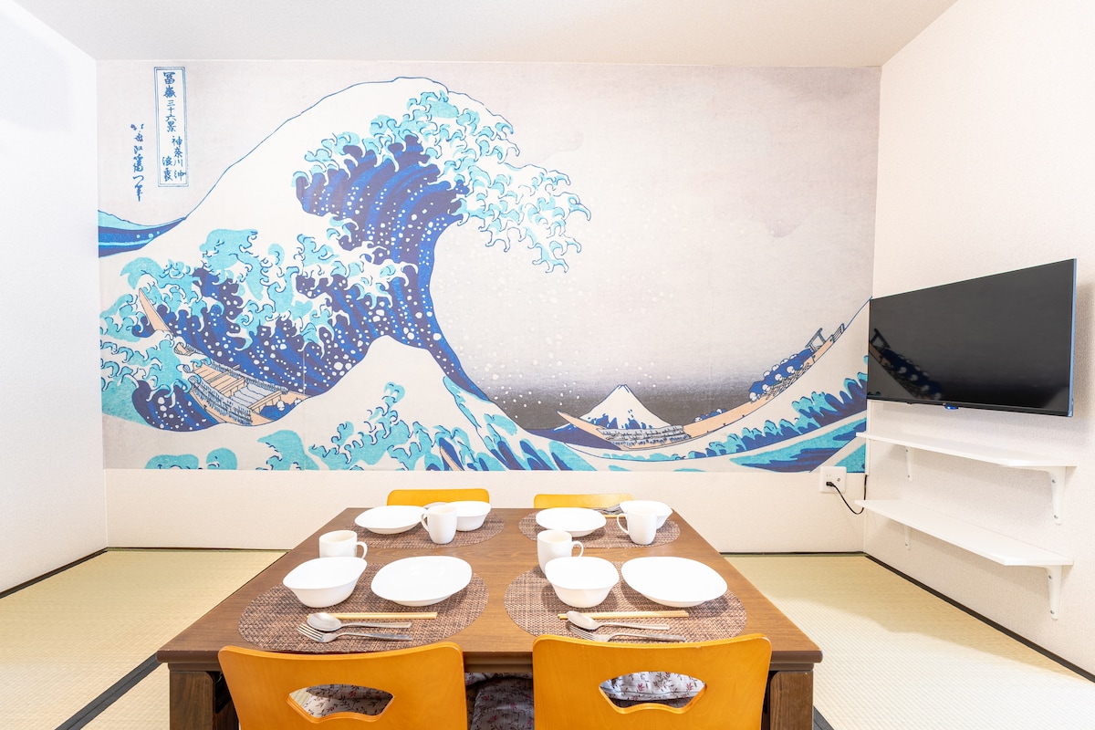 住ノ江駅から徒歩4分! 難波駅まで電車で10分! 日本文化を体験できる和風古民🏠 ◆お部屋のポイント 日本の古き良き文化を体感出来る和風の古民家 葛飾北斎の襖が自慢のリビング! 冬はこたつでゆったりおくつろぎいただけます。(こたつは12月~3月のみ) ダブルベッド1台、布団が2組 最大4名宿泊可能です! 高速 FREE Wi-Fi有! ◆立地、アクセス 世界的にも有名な住吉大社まで徒歩7分 関空から45分(乗換え1回) 難波駅まで10分 USJまで35分 アクセス抜群で大阪観光の拠点にも◎ ◆周辺施設 コンビニ2分 スーパーマーケット4分 銭湯4分 商店街7分 飲食店多数(レストラン、カフェなどMAP有) ◆キッチン お好きな食材をお持ちいただき、調理が可能です! ・冷蔵庫、冷凍庫 ・電子レンジ ・トースター ・ケトル ・フライパン ・鍋 ・調理器具(包丁、まな板、おたま、菜箸等) ・調味料(油、塩胡椒) ・食器類(お皿、おわん、コップ等) ・洗剤、スポンジ ◆無料サービス 珈琲、紅茶、緑茶、お水(人数分) ご自由にお飲みいただけます