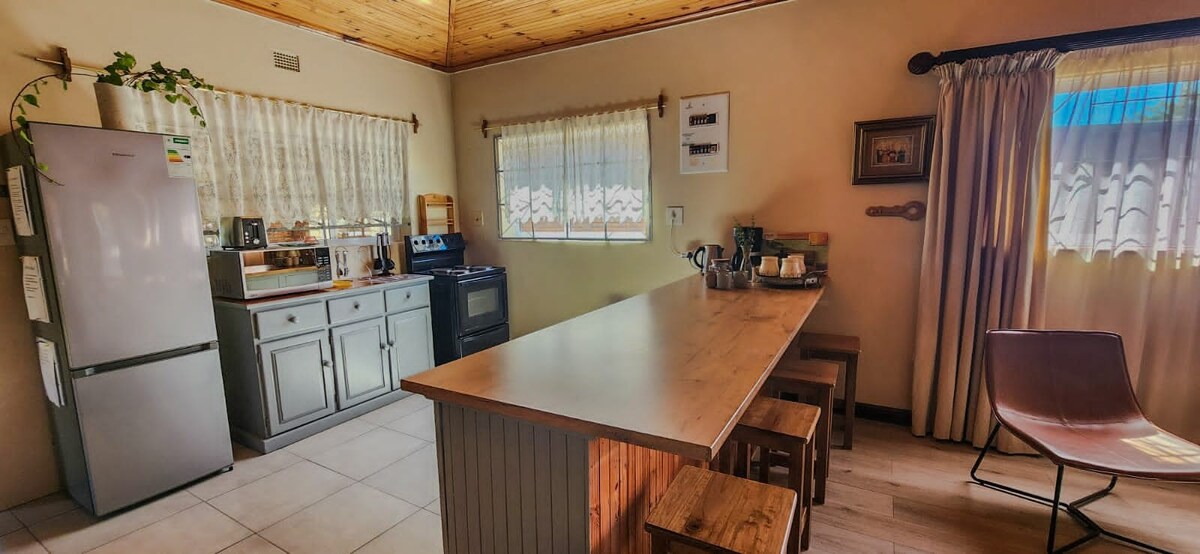 Una casa de campo tranquila, privada y silenciosa a 17 km de Graaff-Reinet. Rodeada de naturaleza y montañas. Abundante avifauna. Un sinfín de posibilidades para caminar, hacer senderismo, ciclismo de montaña y pícnics. Carreteras 4x4. ¡Está preciosa después de un poco de lluvia! La casa de campo cuenta con una cocina totalmente equipada y 2 dormitorios con baño, así como un sofá cama en la sala de estar. La sala de estar tiene aire acondicionado. Chimenea interior y braai exterior. Uso de la piscina. Un lugar para relajarse.