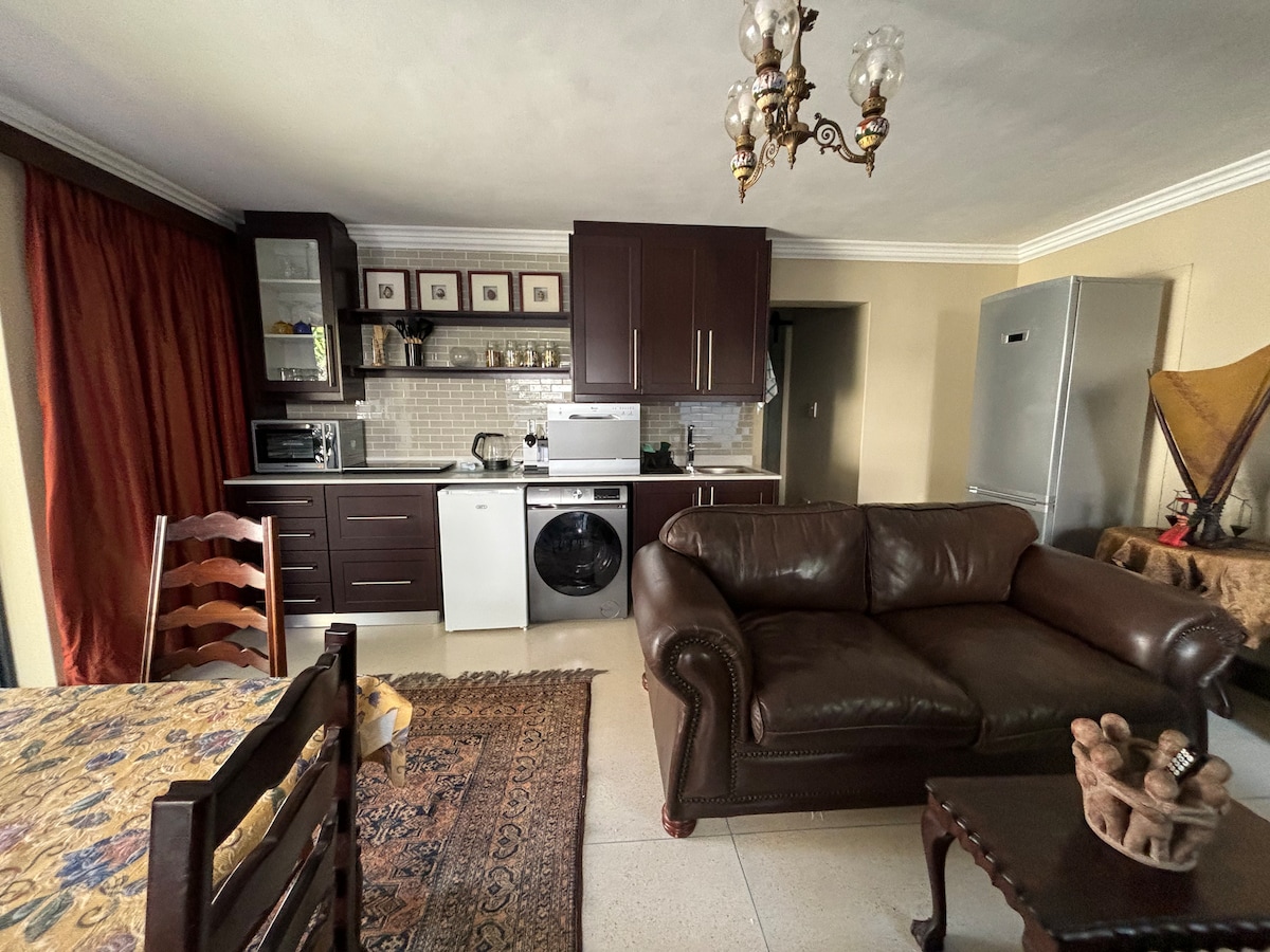 Este lugar único tiene un estilo propio. Un nuevo apartamento de 60 metros cuadrados en una zona residencial tranquila y segura en Flamingo Vlei, cerca de la playa, el aeropuerto, el campo de golf y el centro de Ciudad del Cabo. Es la escapada perfecta para unas vacaciones inolvidables, ofreciendo comodidad y privacidad. Se proporciona una cocina totalmente equipada, una ducha abierta, un cómodo sofá, una cama tamaño XL King con vistas a la montaña de la Mesa y mucho más para relajarse. Sin deslastre de carga. ¡Fritz! Internet de fibra óptica de 50 Mbps de Mesh.