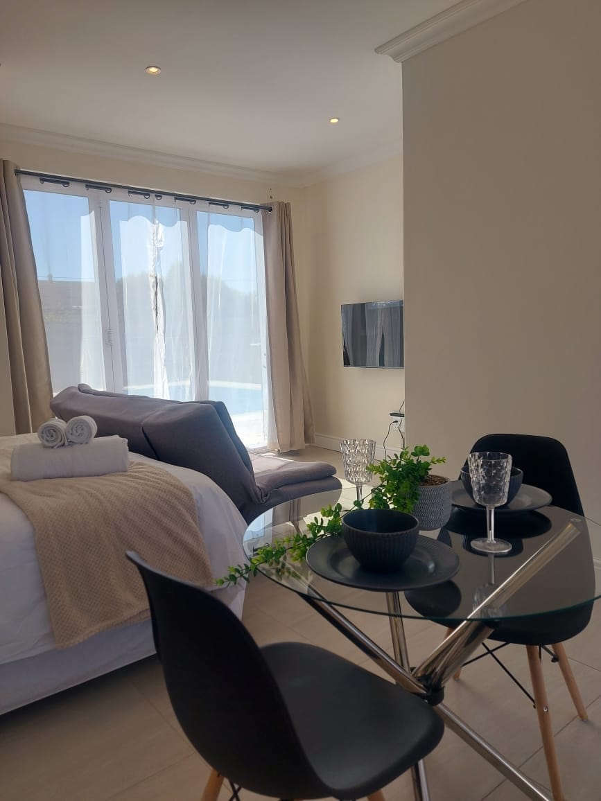 El apartamento tipo estudio es una unidad de lujo, totalmente equipada y con aire acondicionado, perfectamente situada a lo largo de la playa en una finca segura de 18 hoyos Links Golf Estate, con vistas panorámicas a la montaña de la Mesa. Este apartamento tiene que ver con la ubicación: está en el décimo hoyo de un campo de golf, con un camino de acceso directo de 2 minutos a una popular playa de kitesurf/windsurf. Perfecto para trabajar a distancia, pasear o hacer yoga en la playa, caminar, correr y montar en bicicleta. Se encuentra a 1 km de restaurantes locales, Seattle Coffee y Woolworths Food.