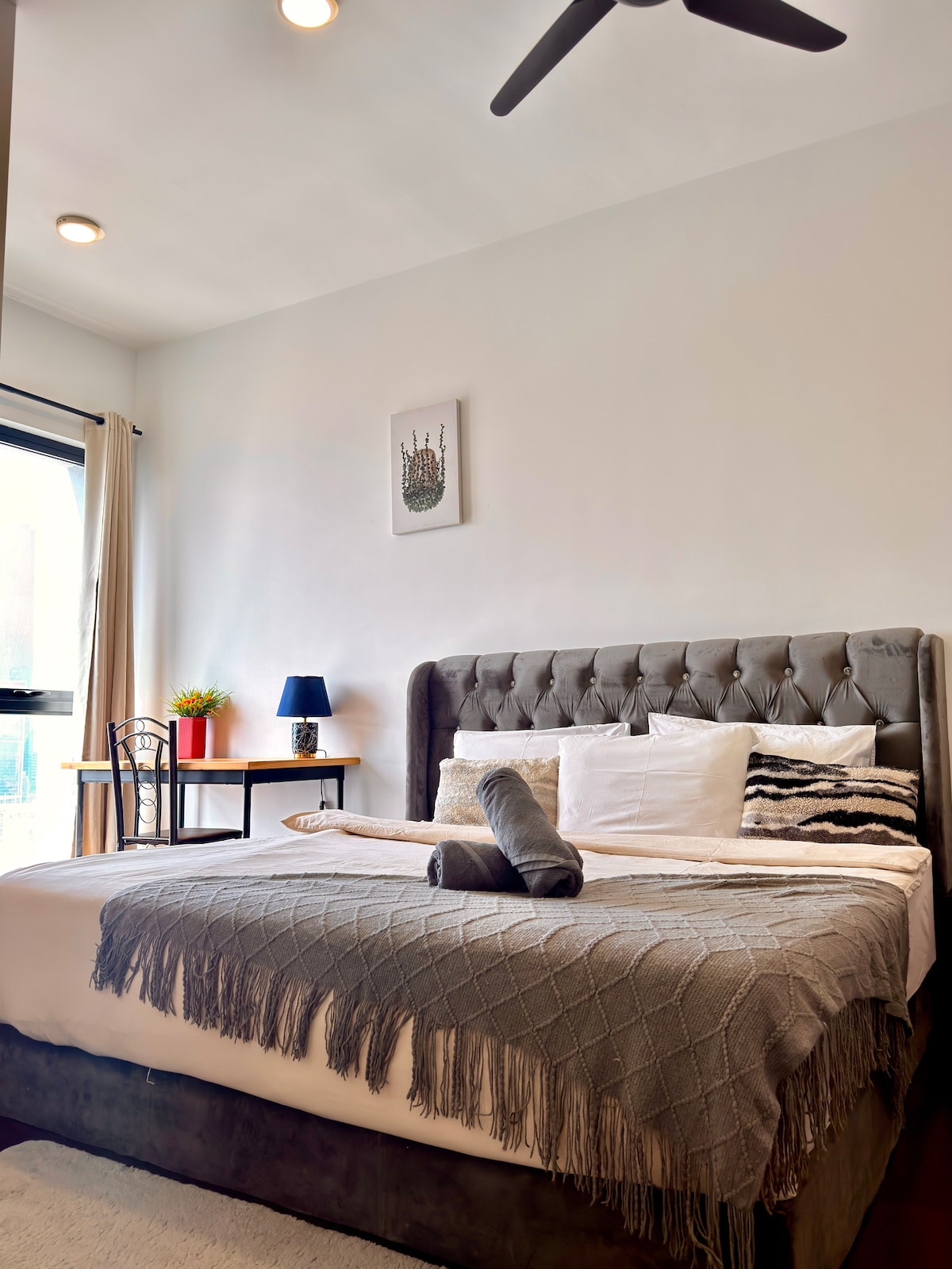 Apartamento de 5 estrellas recién renovado en el corazón de la ciudad de Kuala Lumpur. Estación de tren justo delante de tu puerta (MRT y LRT). Cómodas y espaciosas suites de 2 dormitorios (65 metros cuadrados) con increíbles vistas al horizonte de Kuala Lumpur. Fácil acceso a todas partes, a solo unos pasos del centro comercial, Sunway Velocity Medical, IKEA, MY TOWN, restaurante, cafetería, tienda de comestibles (7-11, myNEWS, AEON), pub/club de vida nocturna. Conexión wifi a internet ilimitada de 500 Mbps disponible y gratuita. 3 camas para un máximo de 5 personas.