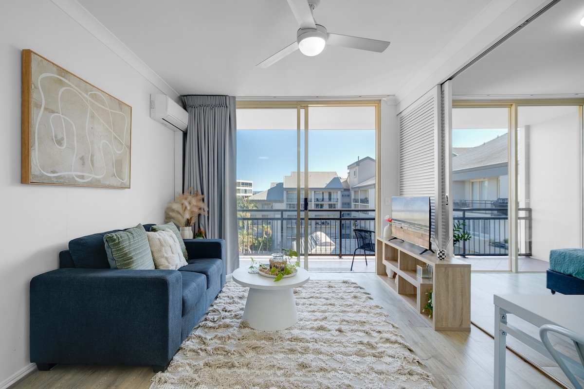 ¡Apartamento de un dormitorio junto al río impecablemente presentado! Relájate en este hermoso espacio recién reformado. Apartamento entero para uso privado. 🚫 No se admiten estudiantes ni recién graduados 🚭 Esta es una propiedad estrictamente para no fumadores. No se permite fumar dentro del apartamento ni en ningún lugar de las instalaciones. Depósito de equipaje disponible en el centro vacacional Q1 (a solo 400 metros de distancia), busca Stasher.