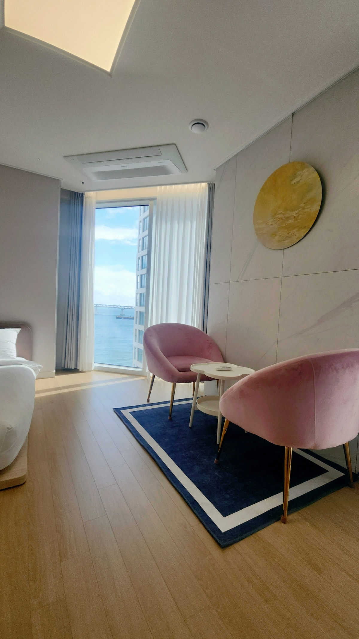 El alojamiento Diamond Bridge, que es el apodo del puente de Gwangan, es el alojamiento de nueva construcción y elegante donde se puede disfrutar de la vista del puente de Gwangan más cercano en Busán. Es un alojamiento de nueva construcción y elegante donde se puede experimentar la mejor vista de Busán con vista a la isla Dongbaek de Haeundae y el mirador de Igidae en Yongho-dong. A 1 minuto de distancia se encuentra la playa de Gwangalli, el centro de reuniones más grande en el Gineus Book, el parque junto al mar, el Starbucks, etc., lleno de cosas que ver y hacer. Pensé en un espacio donde pudiera escapar de la rutina y descansar cómodamente al menos una vez. La singularidad y la transición del espacio pueden dar satisfacción momentánea y emociones, pero no durarán mucho. Traté de crear un espacio armonioso que no interfiera con la hermosa vista, la comodidad que se siente durante la estadía y la sensibilidad que se puede sentir suavemente durante mucho tiempo. Mientras te quedas en un viaje que has planeado con dificultad, te dejarás llevar por el mar y el espacio maravillosos de Gwangalli a través de la cinemática.
