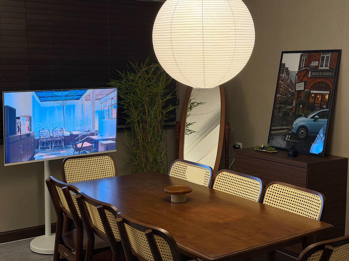 ■ Este alojamiento se registró y operó como una empresa nacional legal de alojamientos compartidos debido al Mystament especial. ■ Pensé y pensé en el precioso tiempo de quienes vinieron aquí. Presentamos este espacio a quienes son especiales y hermosos. • El número de personas es de 2 básicas, y es posible hasta 4 personas. • Entrada a las 15:00 h. Salida a las 23:00 h. • Servicios Secadora, champú, acondicionador, jabón líquido para el cuerpo, jabón líquido para las manos • Medios de entretenimiento y otras comodidades TV de 55 pulgadas, wifi, lavadora de tambor, sistema de aire acondicionado • Comedor de servicios. Mesa de comedor para 4 personas, nevera, microondas, hervidor eléctrico, Nespresso (pop), vajilla, juego de cubiertos (4 personas), utensilios de cocina, tazas como copas de vino, sal, sal a base de hierbas, aceite para cocinar, azúcar • No se permite estacionar, pero puedes estacionar en el callejón frente a la casa. Tenga en cuenta que hay un estacionamiento privado cerca. Si necesita orientación, comuníquese con nosotros. • Es una zona residencial tranquila y cómoda con poco ruido, en el segundo piso de una casa unifamiliar.