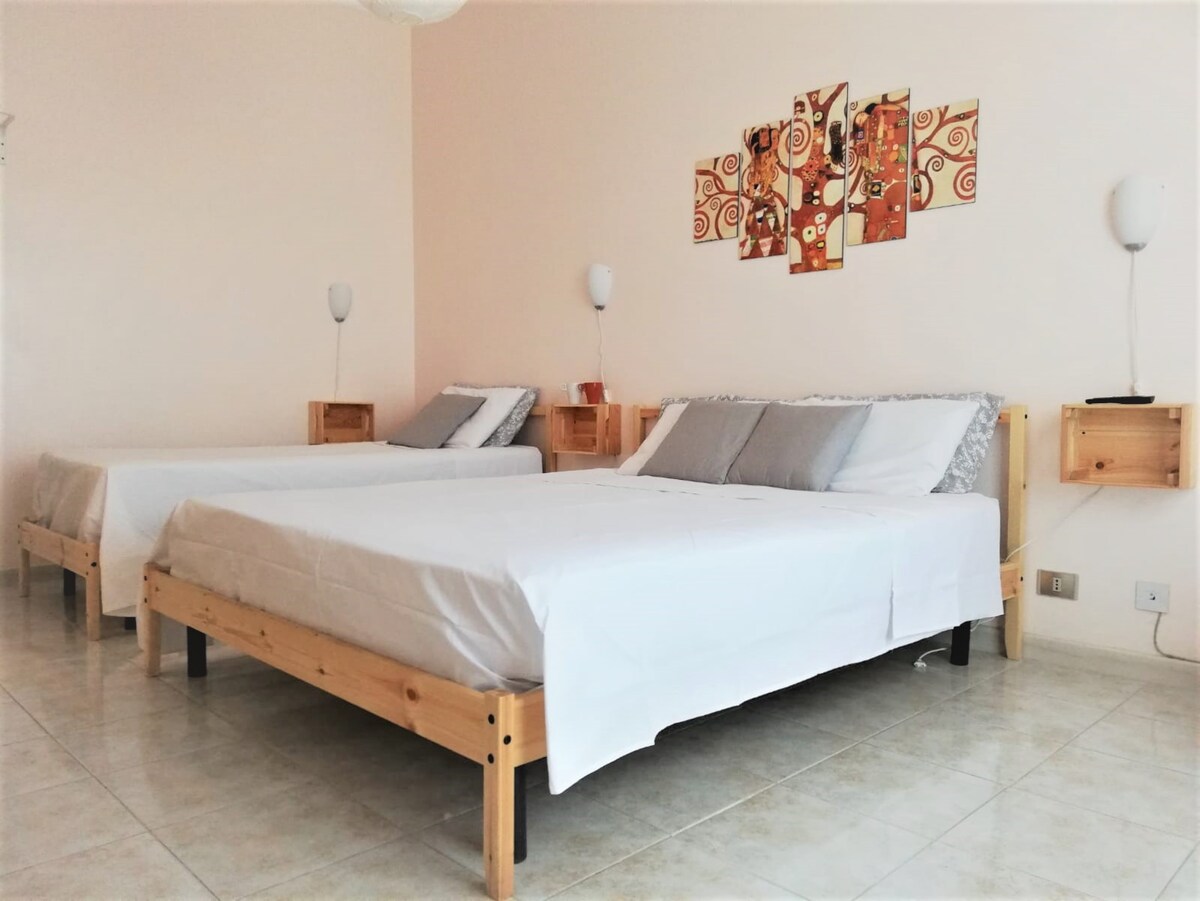 Los departamentos con vista a la piscina y al mar son departamentos de un dormitorio, una sala de estar y un baño privado con ducha y bidé. Cada uno en una terraza privada con vistas al mar de Fontane Bianche y piscina climatizada. Tienen una cama doble y un sofá cama, cocina americana equipada, artículos de tocador de cortesía, tetera y tetera de hierbas, nevera e Internet wifi, sauna común. La limpieza de la habitación con cambio de ropa de cama se realiza previa solicitud.