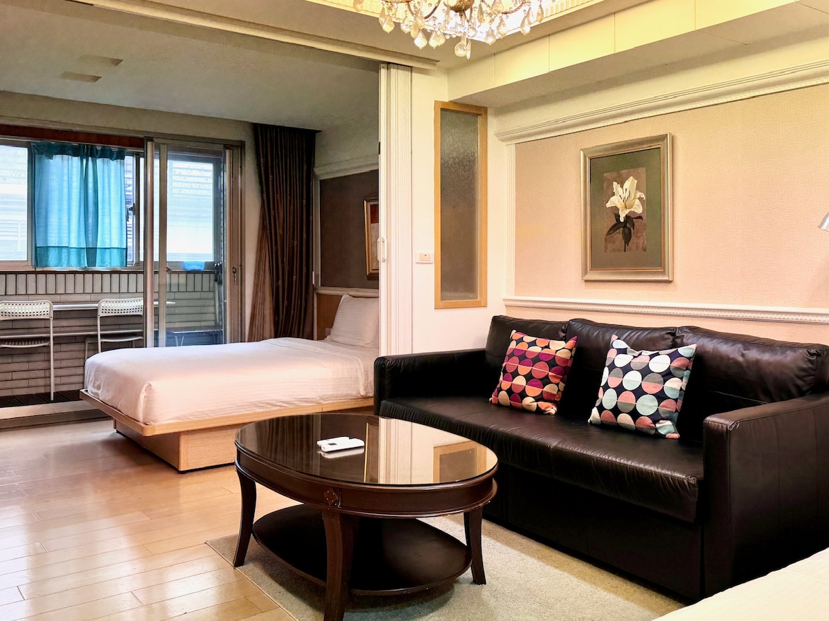 • Ximending (bañera de hidromasaje♨ + lavadora y secadora de tambor + balcón grande) (2 personas) Sala de estar grande Ximen MRT