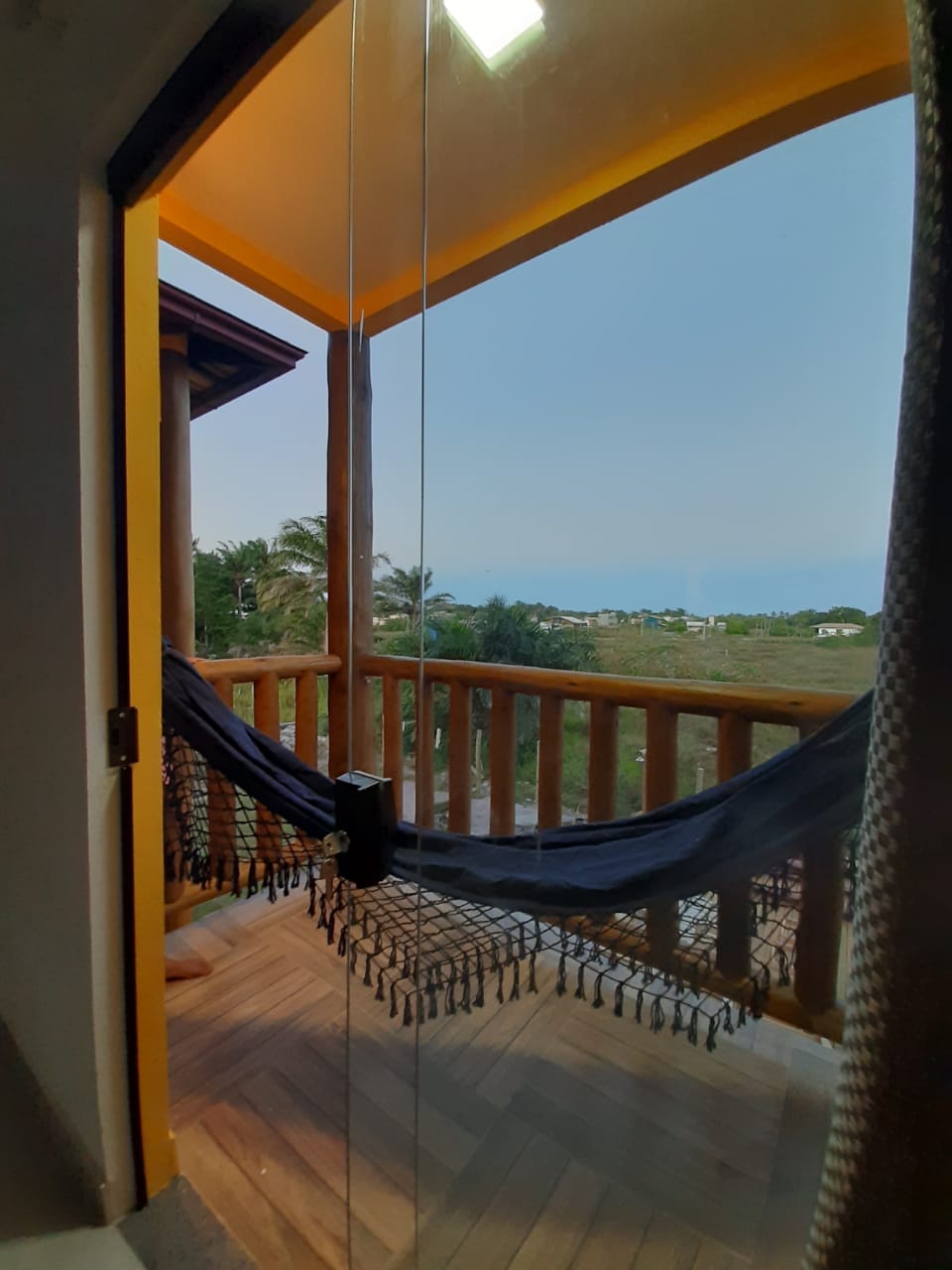 Chalé Lua Branco (tema indígena) Rústico , creado para alojar a personas que quieren conectarse con la naturaleza. Un chalet de madera con una cama doble con ventilador. Ventana y puerta. Balcón con terraza y hamaca con vistas panorámicas del verde de las plantas autóctonas y el mar de la hermosa playa de los tres cocoteros 🌴 Si alojarse en esta cabaña es una energía única porque los pueblos indígenas pasan por aquí, siempre cuando salen del pueblo, haciendo ceremonias y bendiciendo el lugar. (El baño está separado)