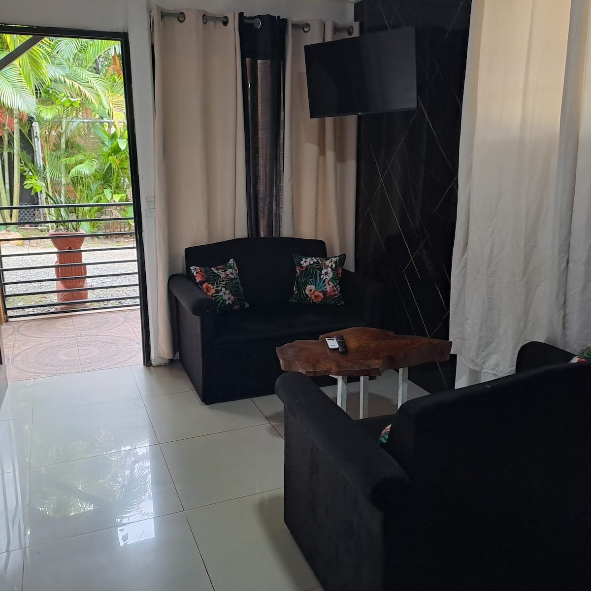 Lleva a toda la familia a este fantástico lugar, en una excelente ubicación. >Estacionamiento para 3 Vehículos< >Todo el apartamento cuenta con aire Acondicionado< >Beneficios geográficos< 9km de Cahuita 8 minutos en carro 7Km de Puerto viejo 6 minutos en carro 1.5km de la gasolinera de Hone Creek 2km del super Negro y Pali 2km de la clínica de Hone creek, funciona 24/7 41km de la frontera con Panamá ( si desea ir de compras) Ofrezco servicio de alimentación y taxi por COBRO ADICIONAL.