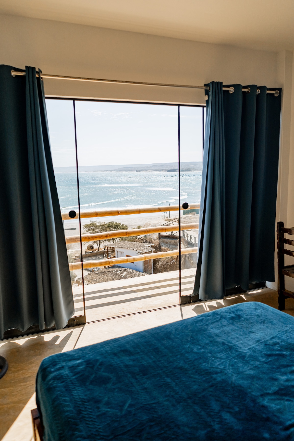 Bungalow Palo Santo Disfruta de la playa Vichayito en nuestro bungalow Palo Santo , con una vista panoramica al mar desde el cuarto y la terraza , un lugar perfecto y tranquilo para desconectarte , rodeado de naturaleza y desayunos encantadores serviodos en la terraza del bungalow
