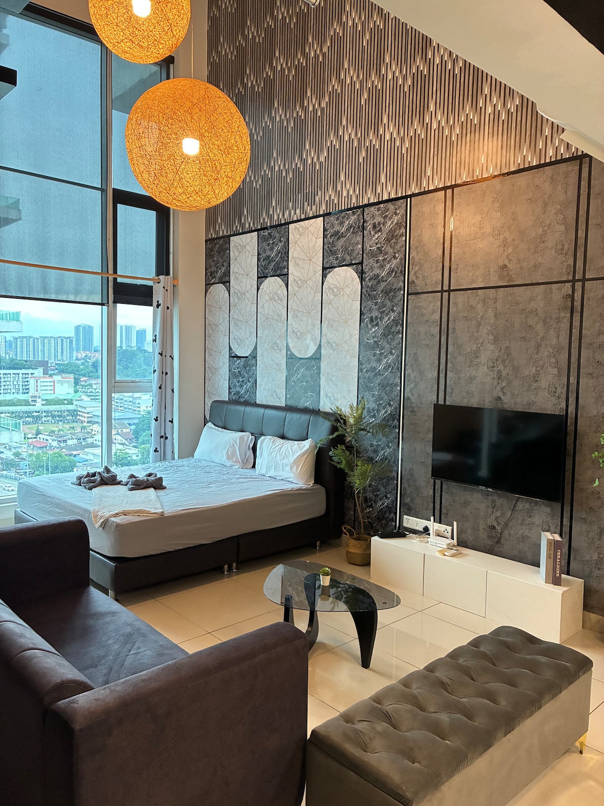 Relájate en nuestra espaciosa y acogedora suite después de un ajetreado día, ya sea que estés aquí por negocios o por placer. Con una cama tamaño king y una cama individual, una cocina moderna totalmente equipada y un baño con ducha a ras de suelo para satisfacer todas tus necesidades. Quedamos a la espera de tu llegada a nuestro cómodo apartamento en la hermosa ciudad de Kuala Lumpur.