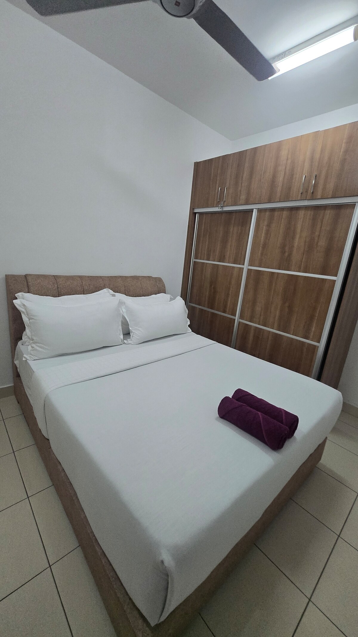 Este apartamento minimalista de 1 dormitorio cuenta con un interior relajante que se siente limpio y moderno. El dormitorio incluye una cama tamaño queen con aire acondicionado. La sala de estar está amueblada con cómodos asientos, una televisión inteligente y wifi rápido. Una cocina compacta (con nevera, microondas, hervidor de agua y utensilios). 🏙️ Ubicado a solo 10 minutos de KLIA y a 5 minutos de Mitsui Outlet Park, con servicios de construcción como piscina, gimnasio y seguridad 24/7, es tu parada de tránsito ideal o un breve refugio en la ciudad.